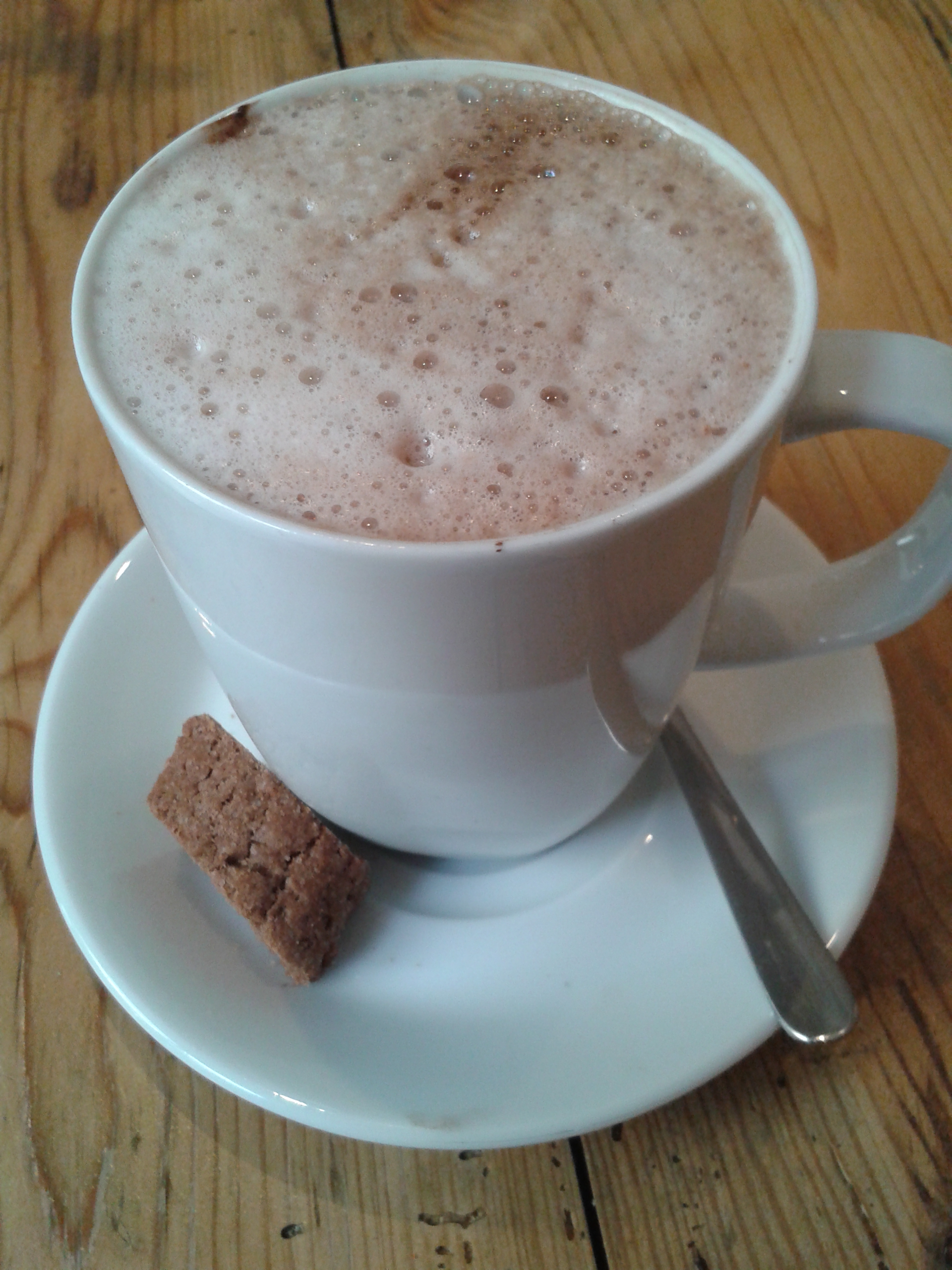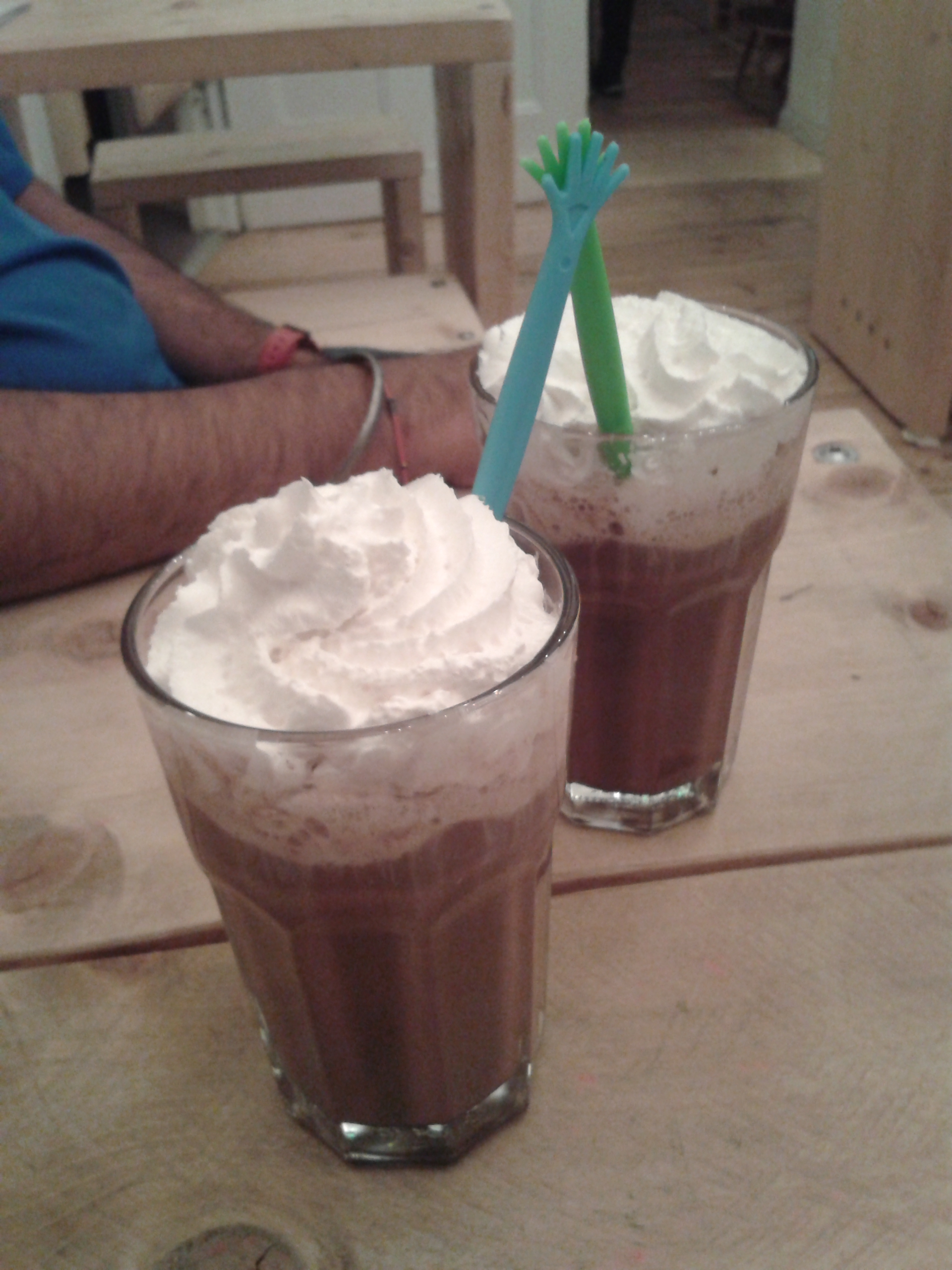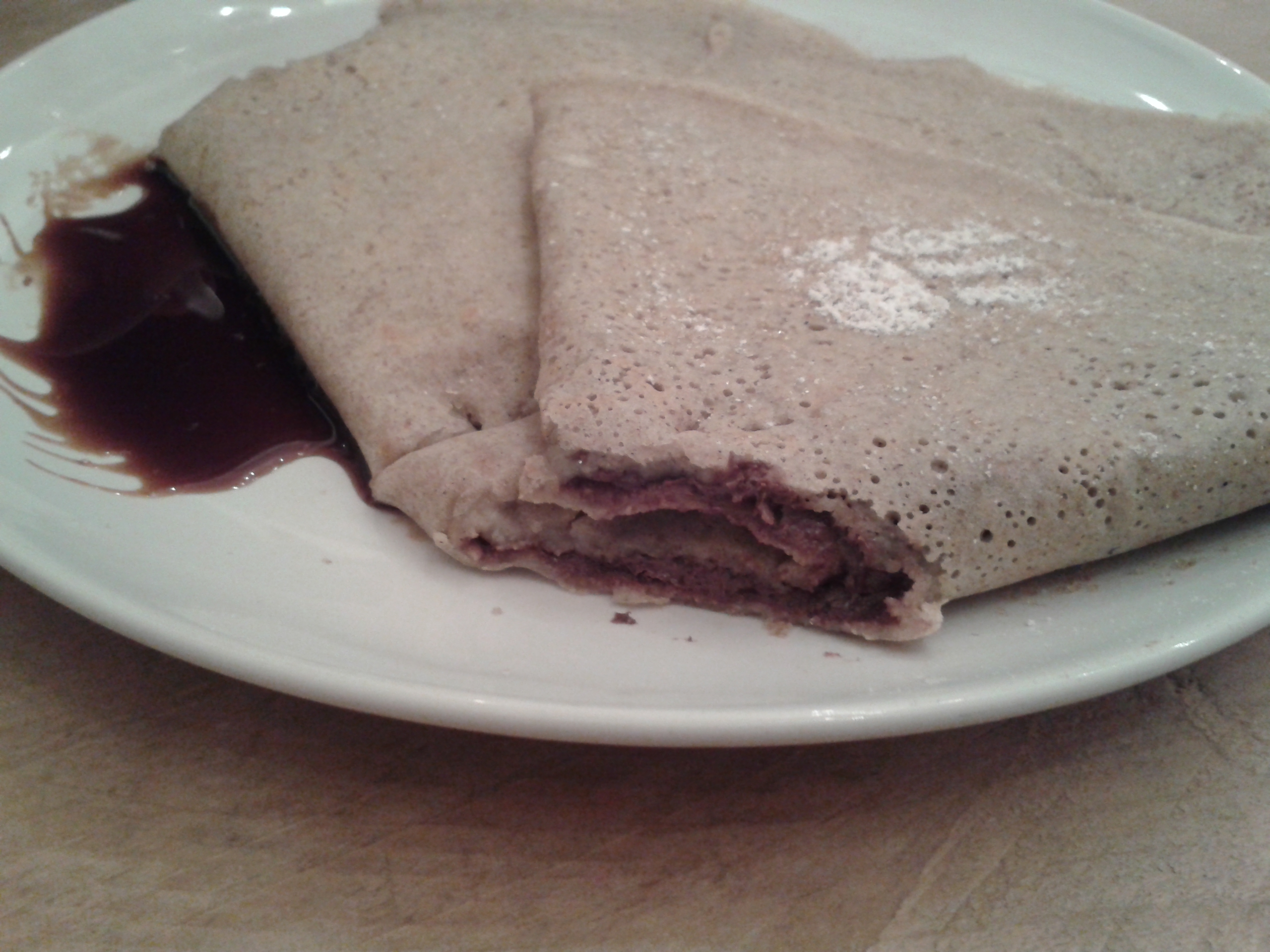 We are not the kind of people who shy away from eating a double course of crepes: we ordered a sweet one to share for dessert. We were hoping for an Alicia Silverstone (chocolate, cream and bananas), but as it was late they were out of bananas so we settled for the Prince instead. It was sublime – a very Nutella-esque filling with a sweet caramel sauce on the side. A hot chocolate alongside it may have been overkill, but I can’t say no to a bit of whipped cream when it’s on offer. We rolled our full bellies home feeling excited at the prospect of all the holiday food awaiting us, and relieved to have a good back-up plan so nearby if all else failed.