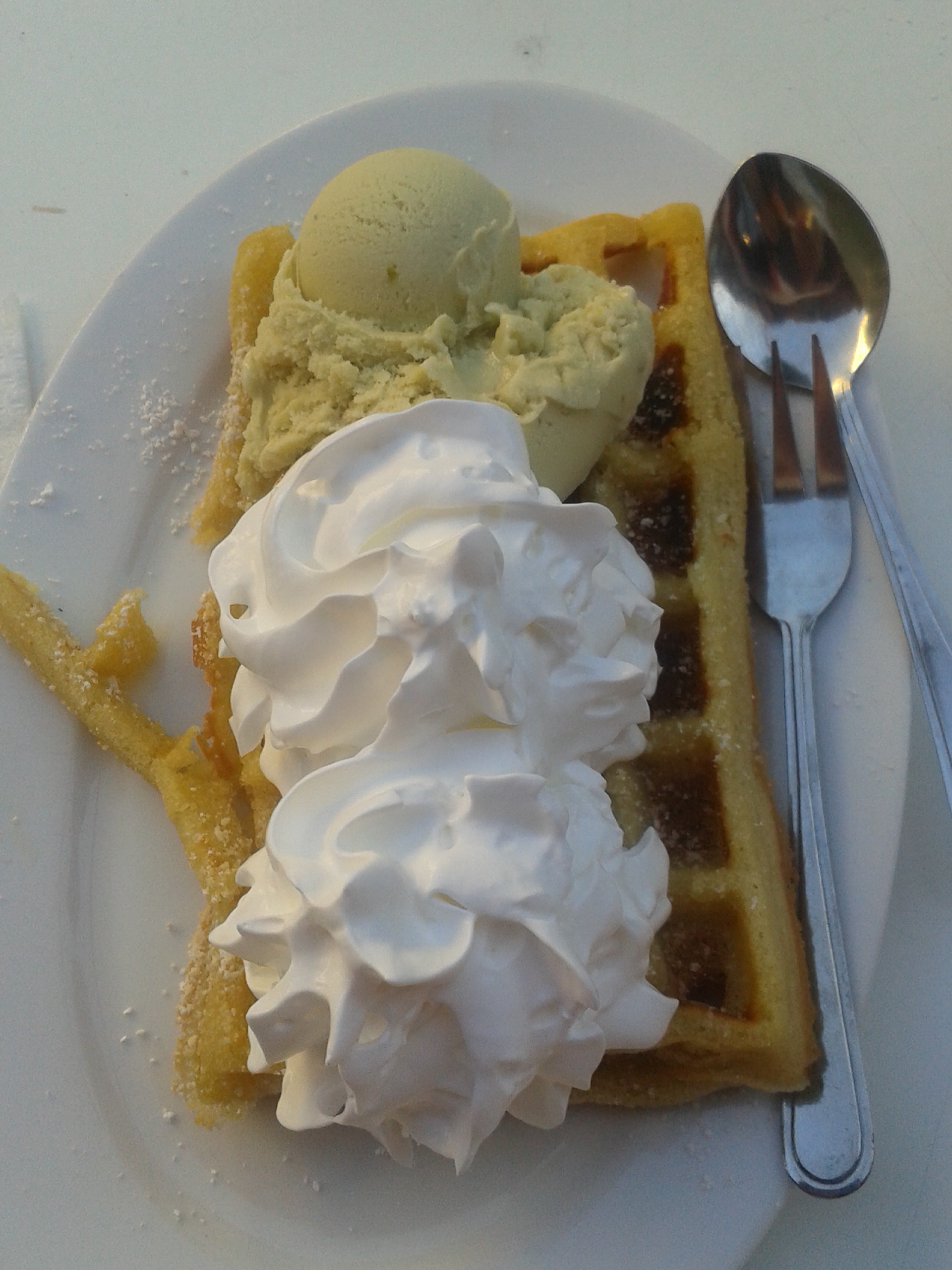 Although there were dessert options in the hall (both cake and ice cream), I had my eye on a prize just a few metres down the road: Eissalon Tanne B, where we picked up some scrumptious Belgian waffles with ice cream and whipped cream. What a feast! It’s pretty rare that I see vegan waffles anywhere, so this was a real treat.