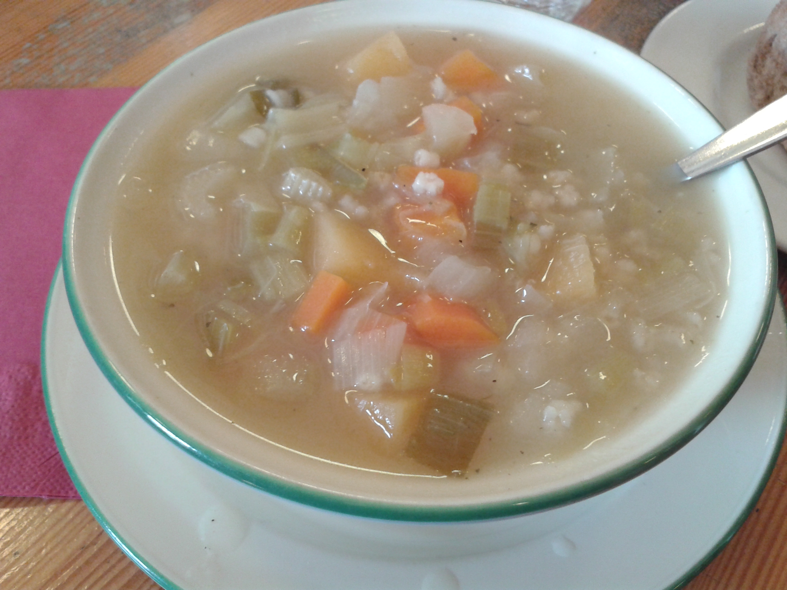 On Saturday we had lunch at The Engine Shed, a nice little cafe at the foot of Arthur’s Seat which is staffed by young people with learning difficulties. It sounds like a noble cause, but unfortunately it isn’t receiving enough funding and is closing down in March next year. The food is all vegetarian and I had expected some solid vegan options, but was disappointed to find the only hot dish for vegans was the soup – a somewhat uninspiring vegetable and stock affair. Still, it filled me up and I feel I was just unlucky to go on a day with no vegan option. My companions told me that the cheesy lasagne was good, so there is every reason to have faith in their cooking.