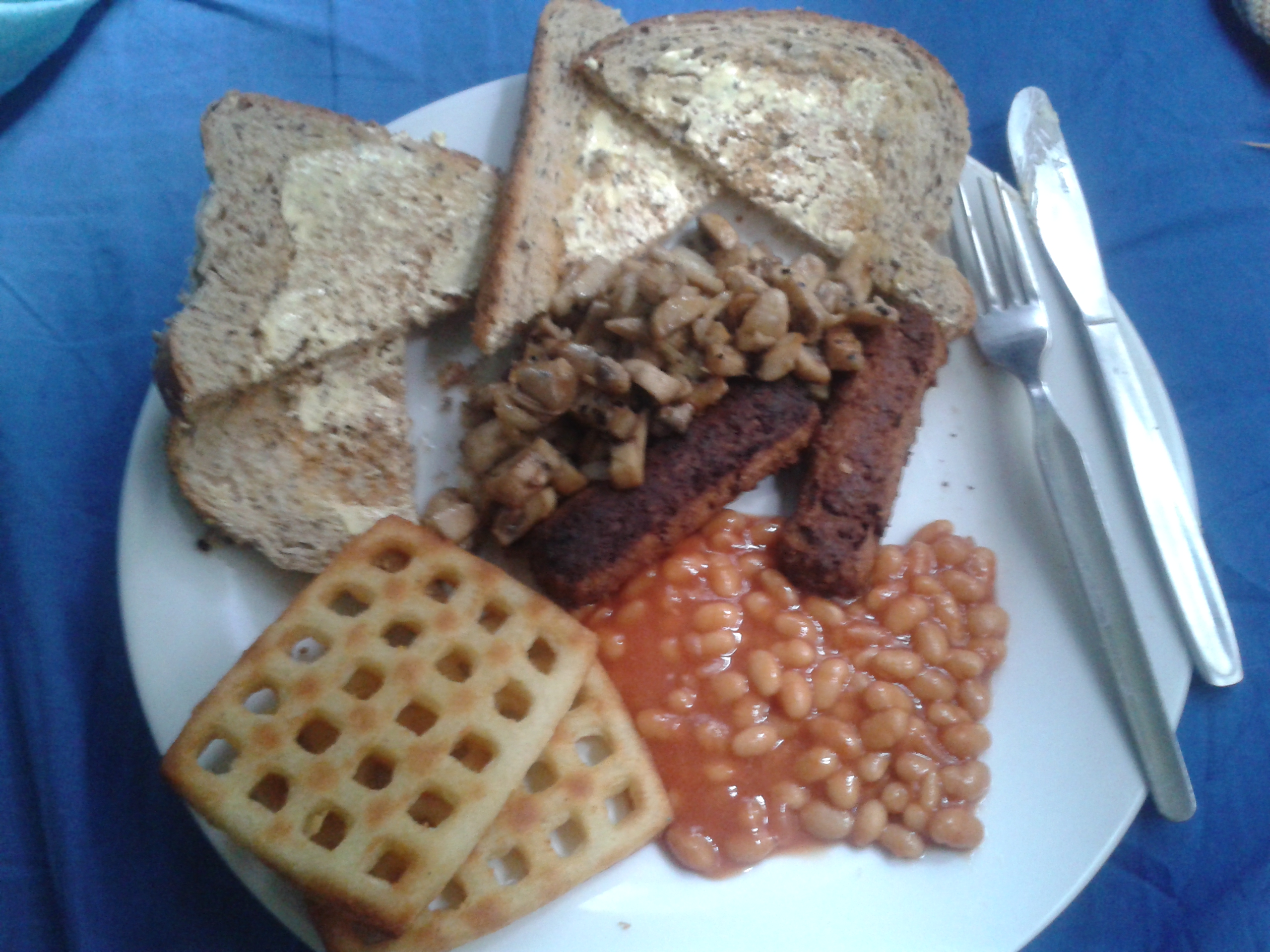 He is a master of cooked breakfasts – his full English has changed since the early days pictured above and now boasts a fancy tofu scramble instead of beans (he could quite happily pour a tin of beans over his breakfast, whereas if a drop of bean juice touches any other food, my meal is ruined), some crispy vegan black pudding and toasted olive bread on the side. The scramble keeps us in lunches for a day or two afterwards as well, and the leftovers even made the journey to Berlin with us in summer.