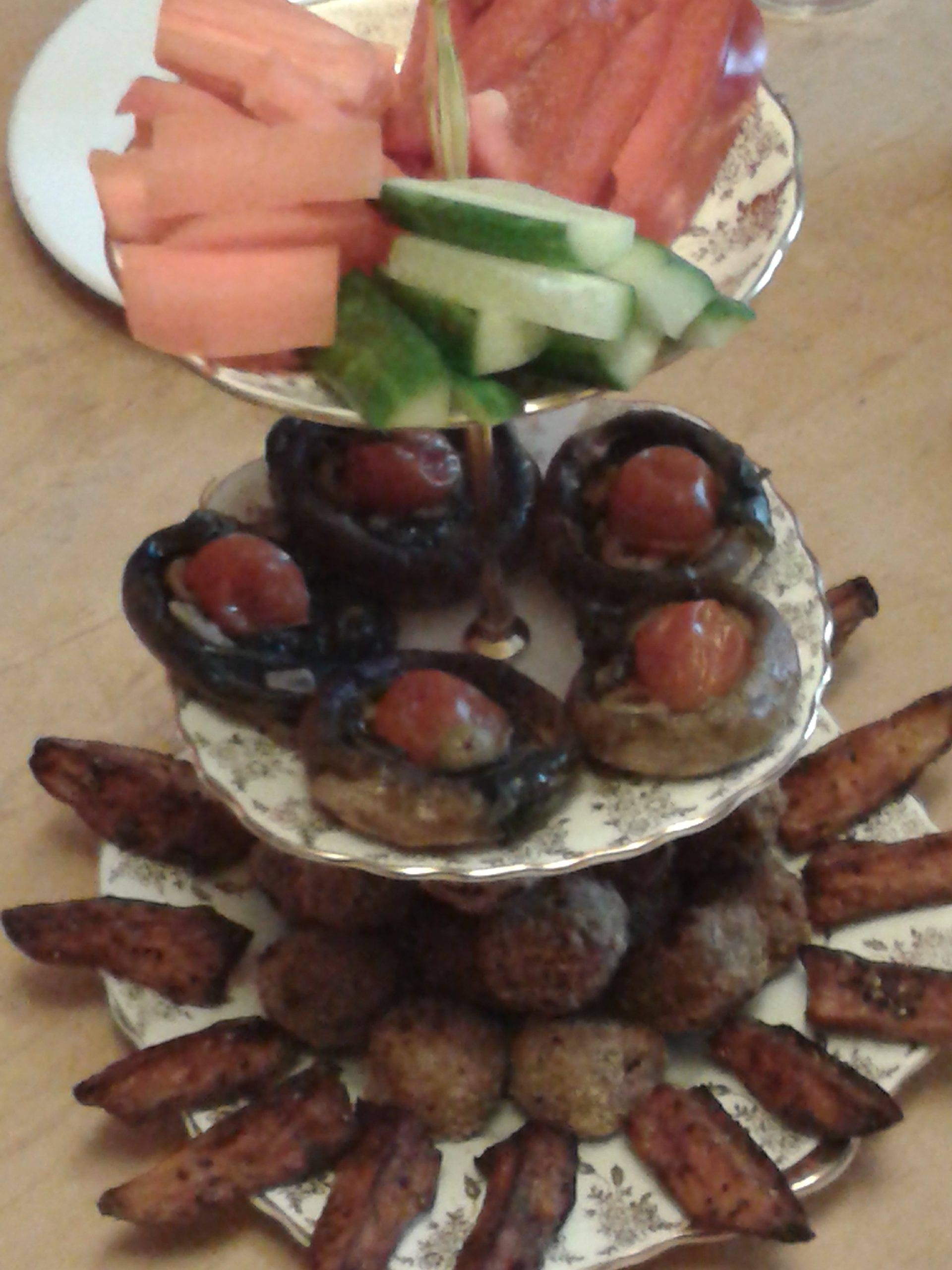Most memorably, when I stored a cake stand at his house for a few days he decided that he must serve me a meal upon it. As he claims not to be a baker, it was not an afternoon tea but a mezze, including his world famous stuffed mushrooms and falafel.