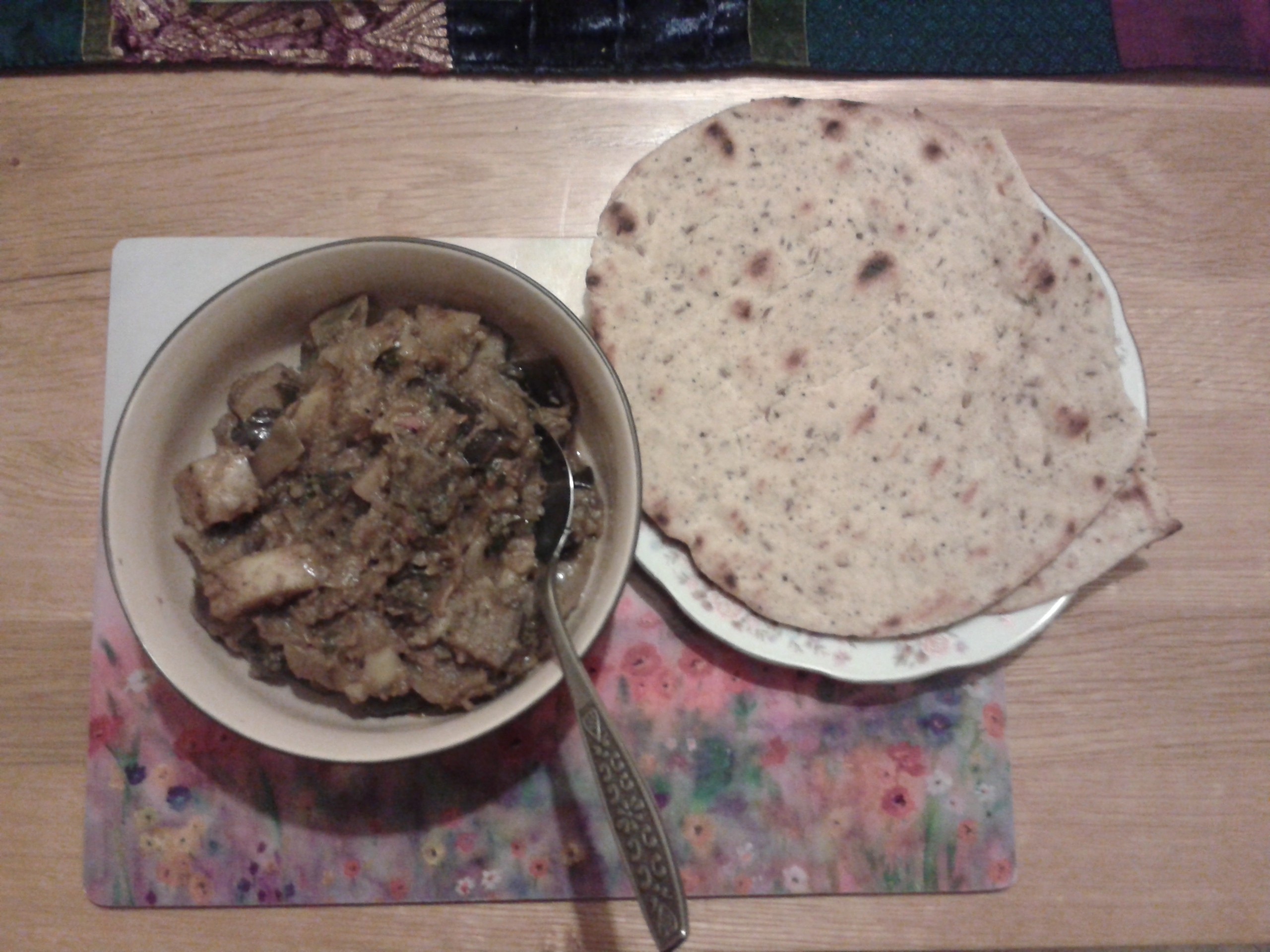 And of course, his speciality. Curry. He has made me a fair few curries in a desperate (and thus far fruitless) bid to increase my tolerance to chillies. Here we have a delicious potato and aubergine bowl of fire, accompanied by homemade bread, as it’s surprisingly difficult to buy vegan naan in the supermarket. This meal was served with tofu covered in a herby marinade, a vegan take on a paneer dish. Unfortunately none of my pictures turned out well, but it was an absolute treat.
