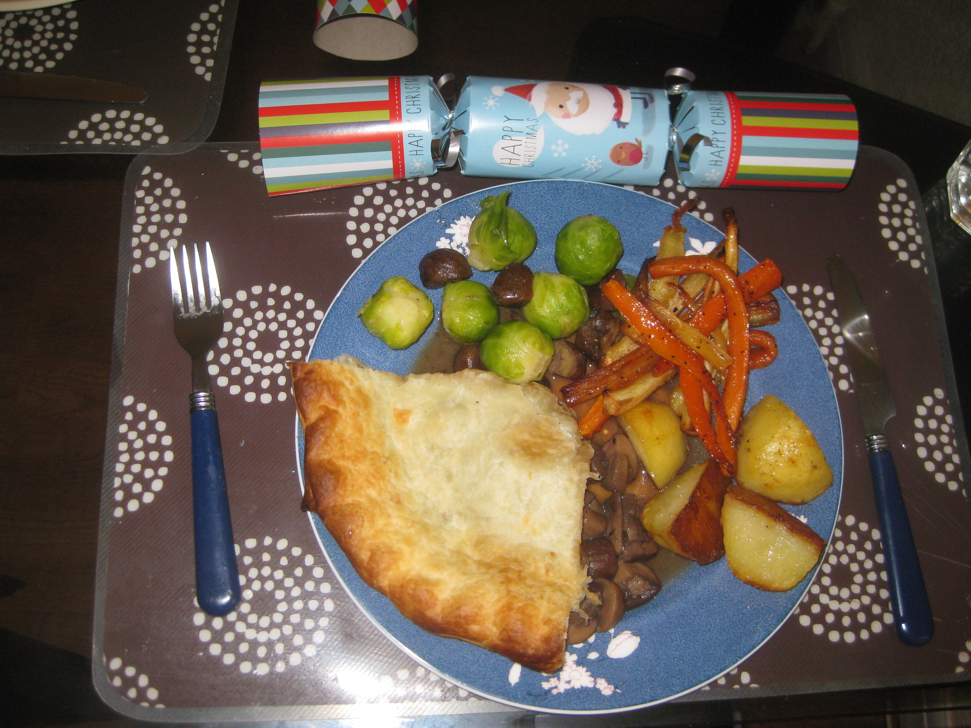 And for Christmas dinner we had this mushroom and chestnut pie, festive sprouts, roasties and maple-syrup-roasted veggies. Delicious!