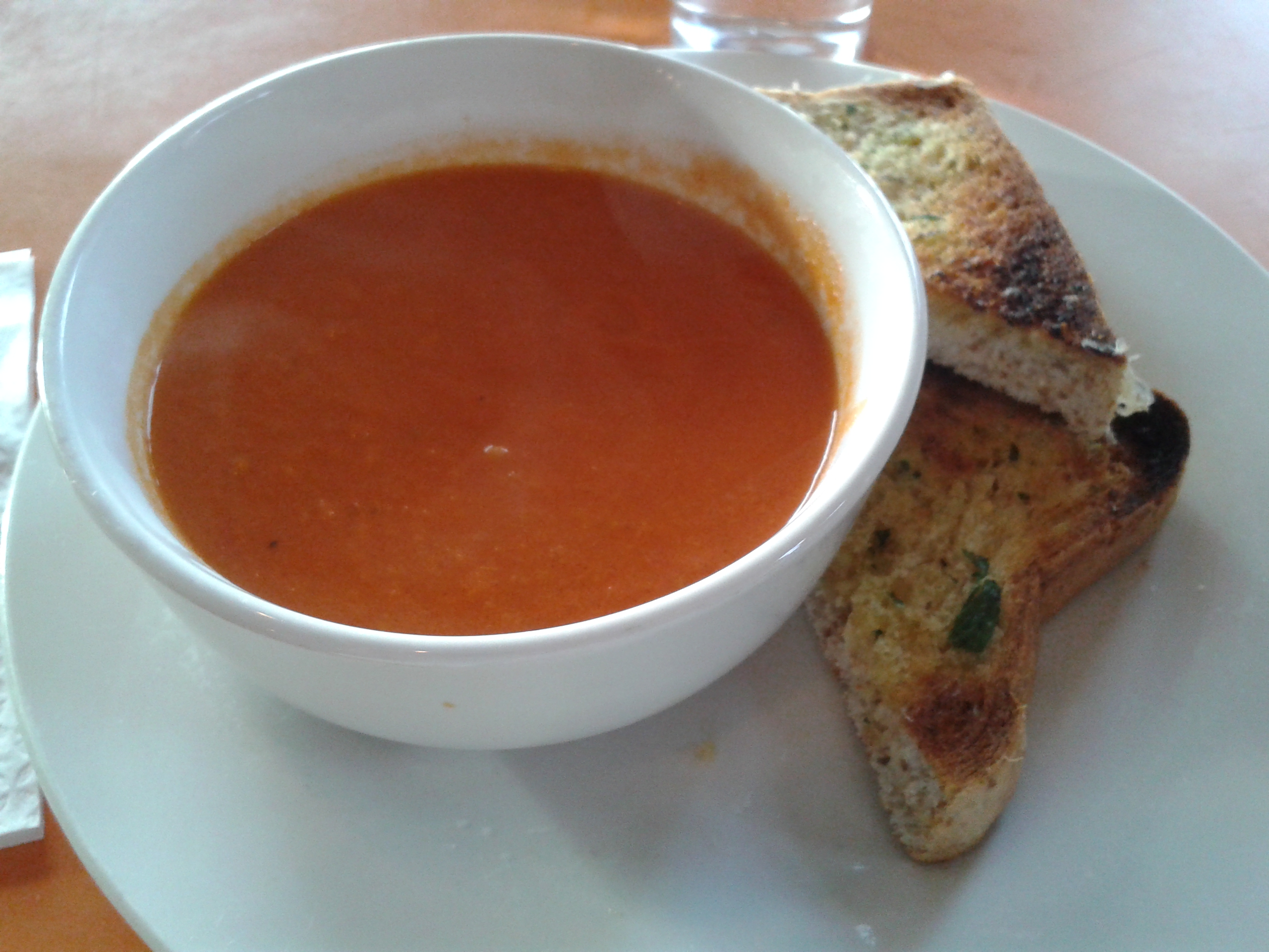 We kicked off with a tomato and fennel soup, which was nice but a touch too bland – a bit more fennel or seasoning would have really made a difference. However, the garlic bread on the side was top notch – really thick slices of bread and they don’t skimp on the garlic.