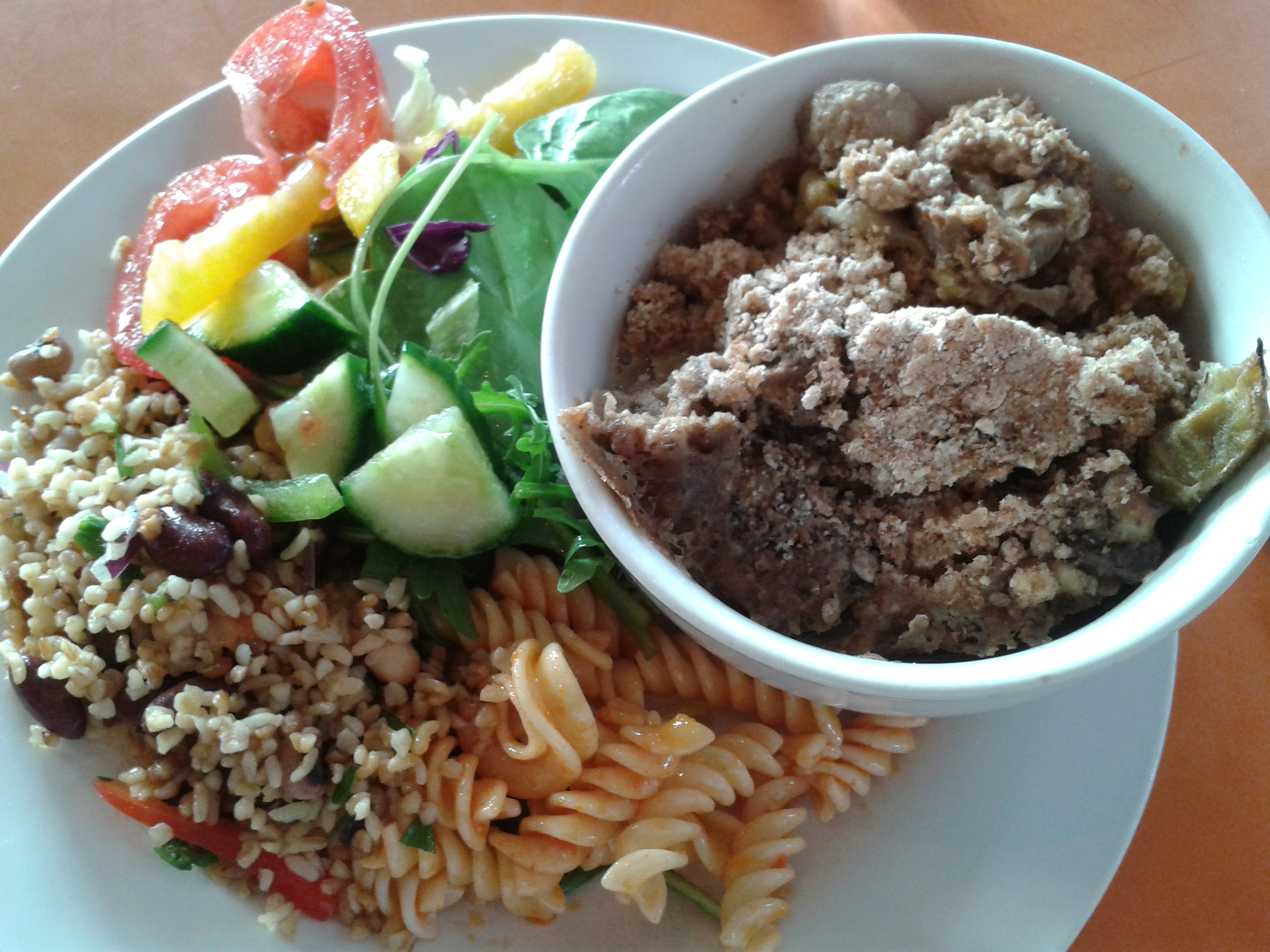 For my main course I had a few vegan options to choose from (all clearly marked on the menu board behind the counter) and went for the suitably wintry leek and mushroom crumble. I like a savoury crumble almost as much as a sweet one, and this was really nice and filling. Again though, a touch more seasoning would have been lovely. And once more, the side dish was the real highlight: the accompanying salads were excellent and definitely filled me up.