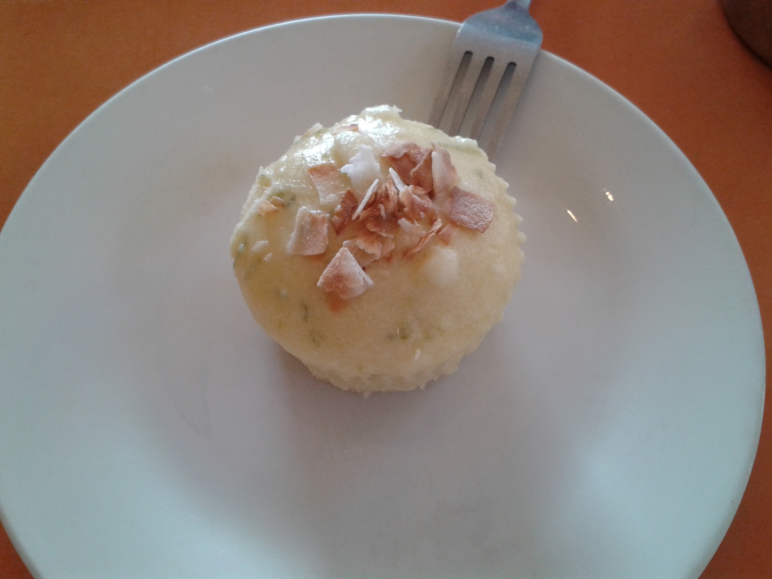 We had a wee breather before embarking on dessert (mostly because the queue was almost out the door). There are always a couple of vegan cakes, and this time I choose the lime and coconut cupcake. It was tropical and had lots of icing, and I would have raved about it…were it not dwarfed by my friend’s gigantic bowl of apple crumble and custard (vegan option available). Perhaps I chose poorly this time.