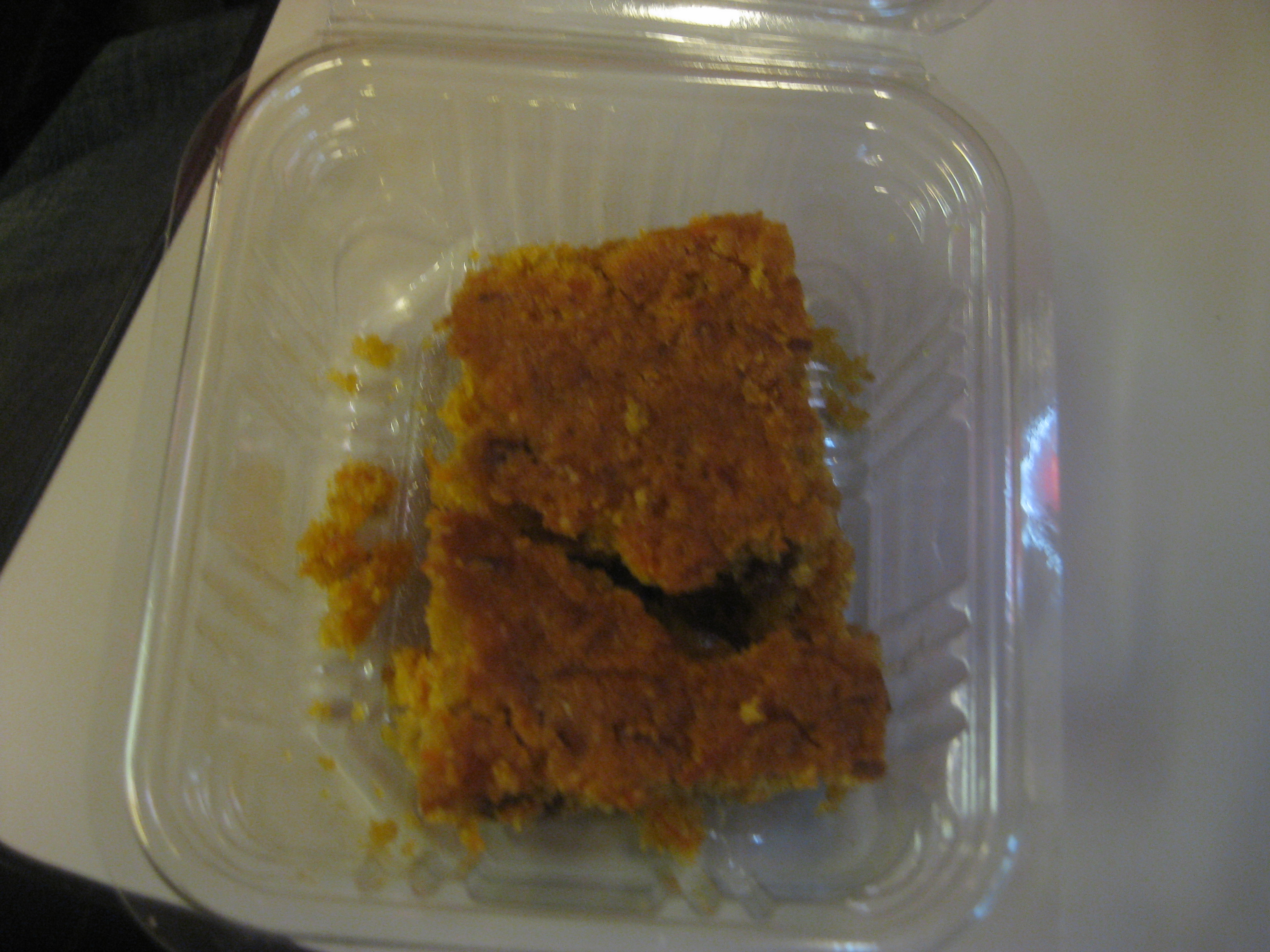 While on the train to Paris, we split some takeaway cake (and I shall blame the poor photographs on the moving train). The carrot cake was tiny, but it had a great texture and some nice crunchy seeds in there as well. It could have done with a bit more spice, and, ideally, some icing too.