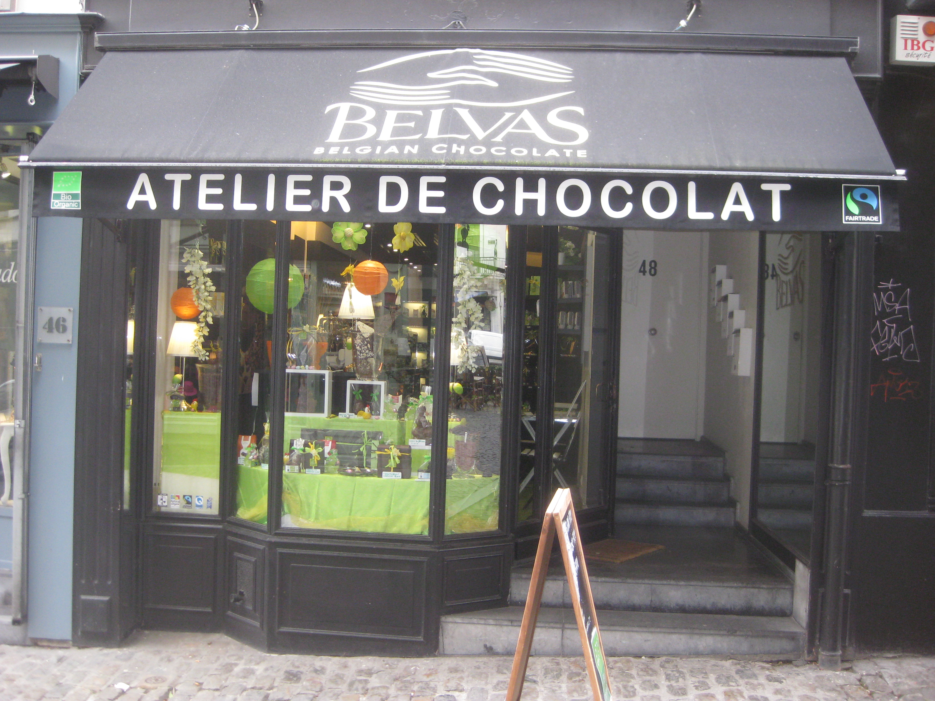I had read on HappyCow that Laurent Gerbaud Chocolatier stocked soy milk for their hot chocolate, and a polite enquiry (in English; fortunately their language skills surpassed ours) proved this to be the case. It was €3.50 for a drink, and it was served with a complementary chocolate from the counter. The staff showed us all of the vegan options (probably about a third of them) and recommended two. The chocolates were delicious, and we’d been very much looking forward to sampling some real Belgian chocolate. The hot chocolate was even better: it was made by pouring hot soy milk onto chocolate solids, so it was thick and intense and delicious. It was in a great location too, surrounded by some pretty buildings and photo-worthy spots.