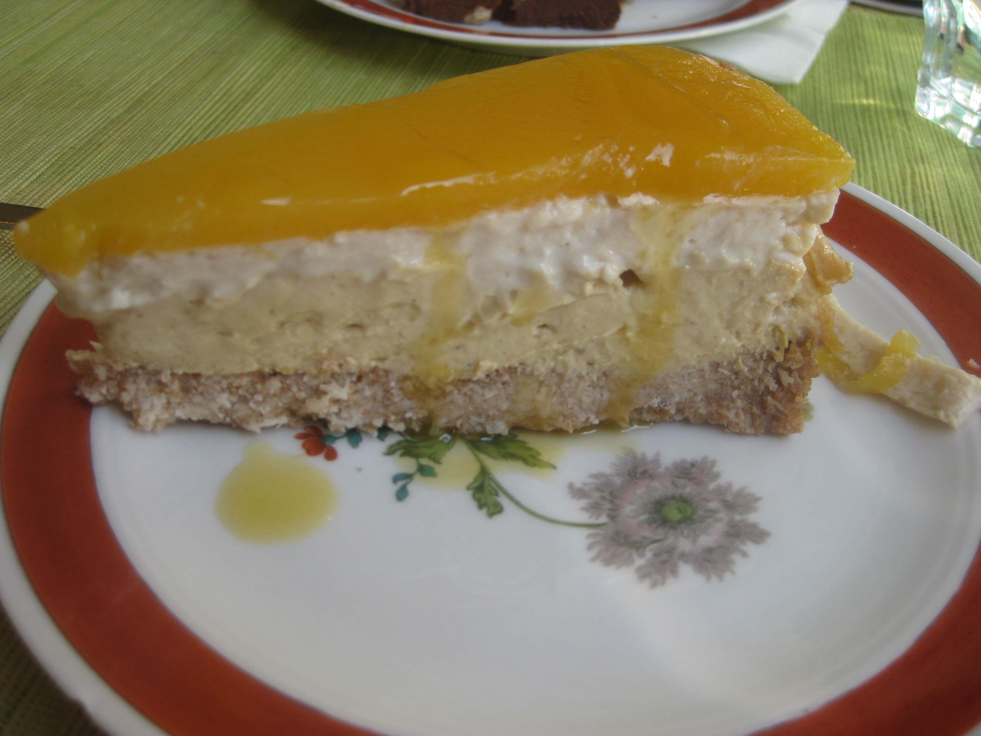 What we had seen so far boded pretty well for dessert, so we split the mango and coconut cheesecake and a chocolate terrine.  As usual, I’d expected the chocolate to be the highlight.  It was a small portion, but rich enough that you didn’t need more.  It was everything I’d hoped for.  But the cheesecake had that extra je ne sais quoi.  The tropical flavours were perfect for the summery weather, the flavours were really strong and the base was good and biscuity.  We couldn’t have asked for more.