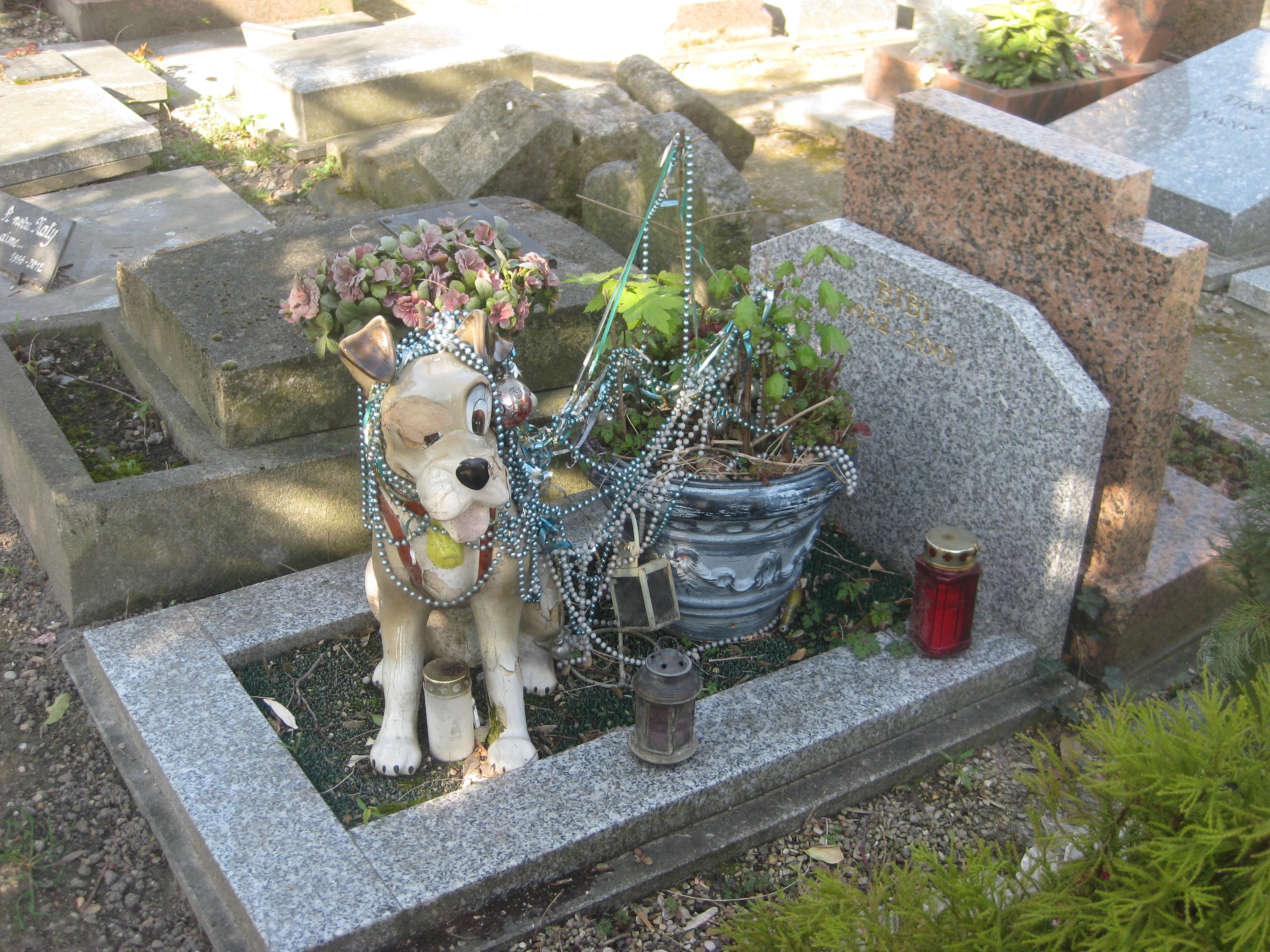 We also stopped by Notre Dame and Sacre Coeur, of course.  One of the most interesting sights was the pet cemetery, which is a bit of a trek on the Metro, but worth it for me.  It’s chiefly a resting ground for dogs, but there are a few cats in there as well, and even the odd monkey, hen or horse.  It was quite touching to see the monuments people had built in memory of their loyal companions, but also a little sad as I wondered if investing so much in the memorials prevented the owners from moving on.