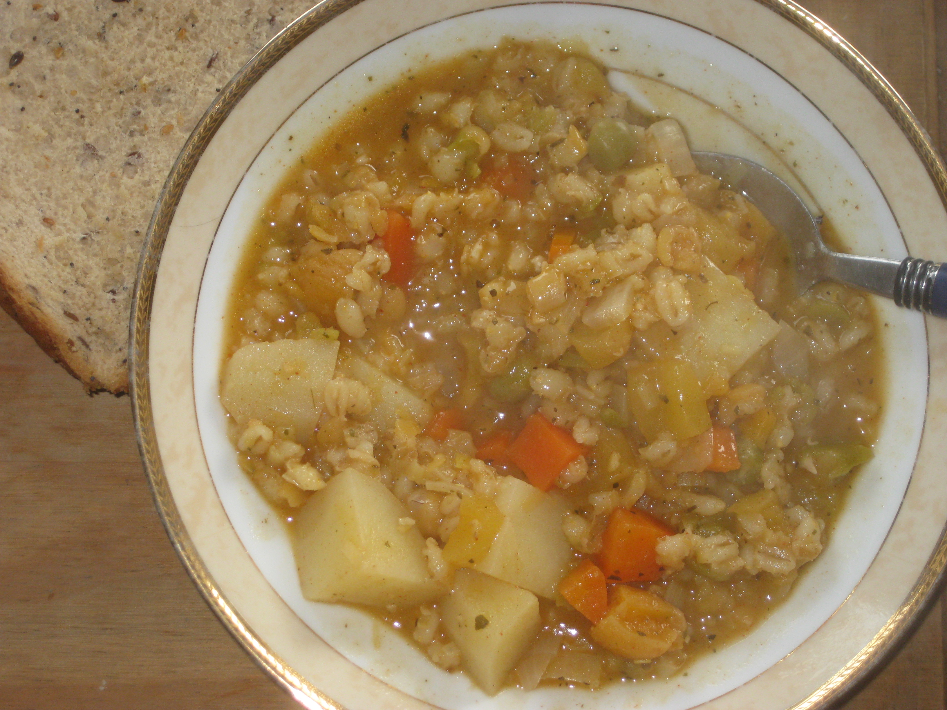 The country cider casserole was a bit time-consuming:  you have to soak the soup mix overnight, then simmer it for 20 minutes, then cook it for one hour.  All the steps are really easy, but it takes so much time that you can’t really just throw it together after work.  For a weekend project while pottering about in the kitchen, though, it’s a definite winner.  There’s a lot of good veg in there, and it packs a nice flavour from the sweet cider, apple and apricots, along with a nice earthiness from the root vegetables and grains.  I’ll certainly make it again.