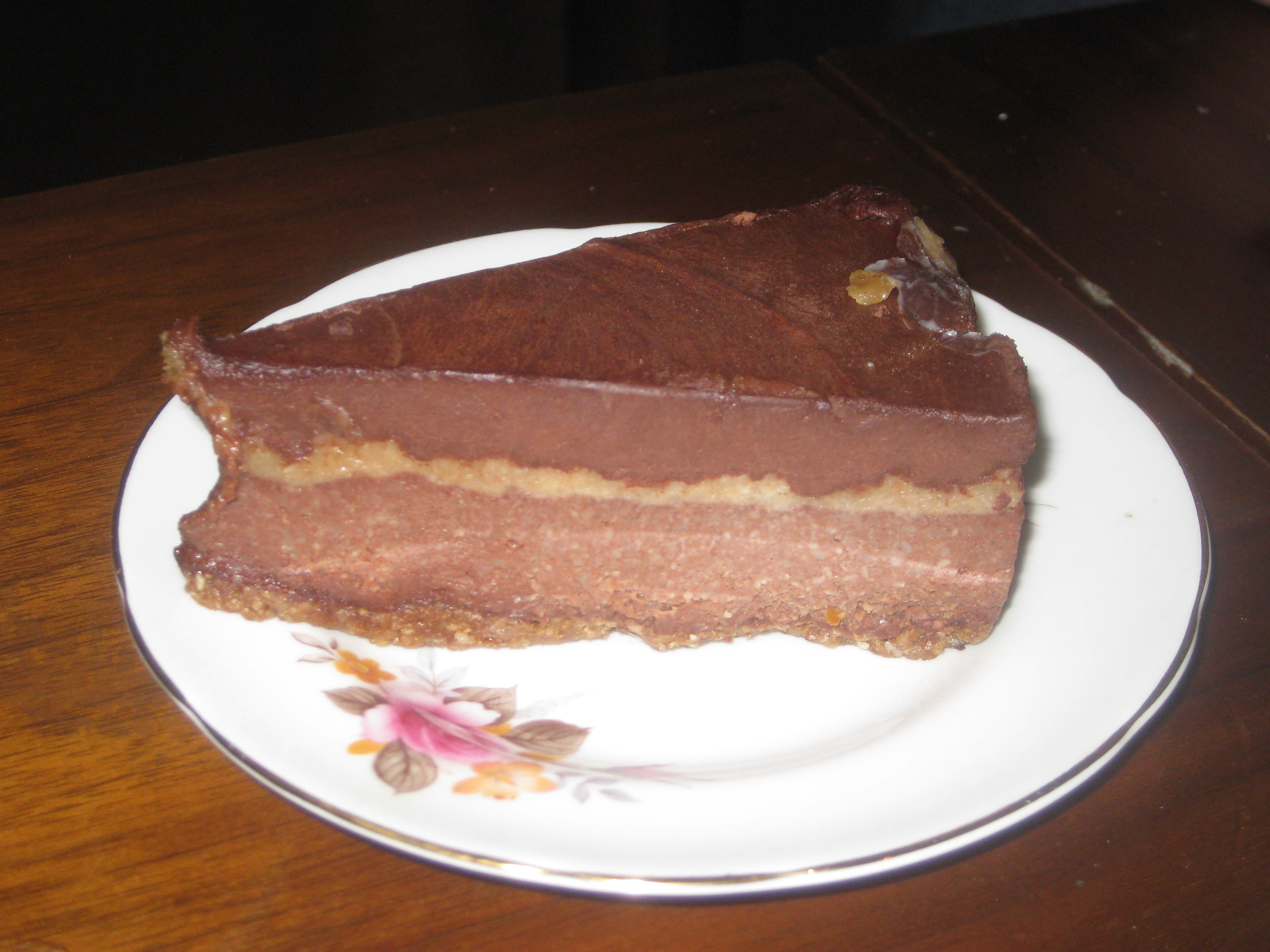 We had to take the last slice of cake away with us: a raw peanut butter and chocolate cheesecake. It pains me to admit it when I can’t finish a meal, but it would have taken a pretty serious eater to get through all of this. Full size cake slices, I remind you! As it was, we didn’t eat again for the rest of the day. We devoured this cake the next day, when we were ready for food once more, and it was good: the chocolate layer at the top was really rich, and as a whole it had the perfect cheesecake texture. I would have like a bit more peanut butter, but other than that it was spot on.