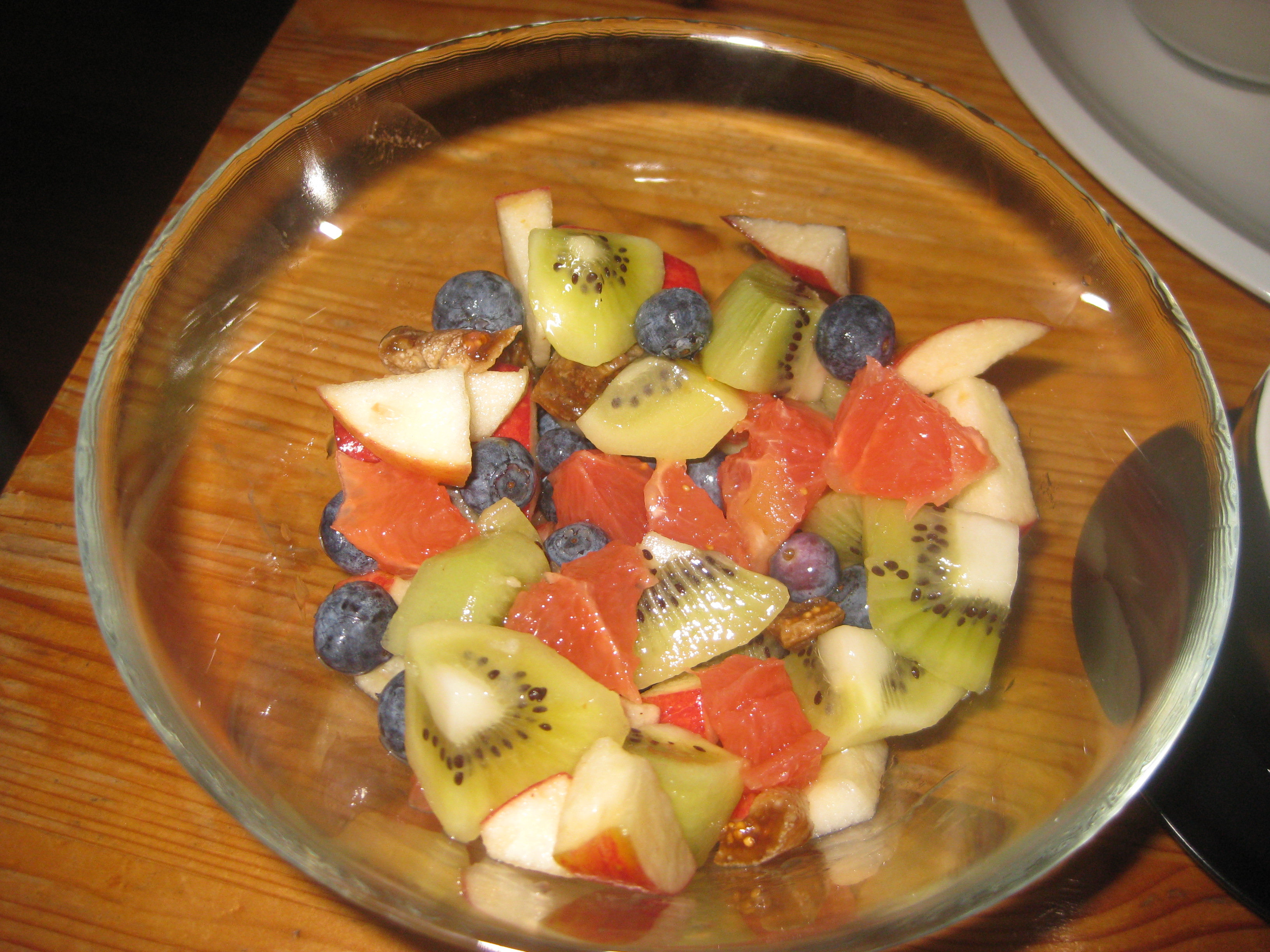 And this was our sad little plate, accompanied by the colourful bowl of fruit up top for us to share. Whither the bread? That’s the two dough balls. They were about the size of ping-pong balls and were quite dense – I wasn’t a fan, though Dr HH said they were the best bit. In the little ramekins we had some coconut oil (which I thought the best part), and a ‘jelly’ whose flavour we couldn’t quite place. That big bowl is full of coconut yoghurt and topped with a solitary, unhappy little blueberry. I love coconut yoghurt, I think it’s luxurious and tropical and everything good. But this stuff was sour. It was in desperate need of something to sweeten it. Even with all the fruit toppled in, it just wasn’t good.