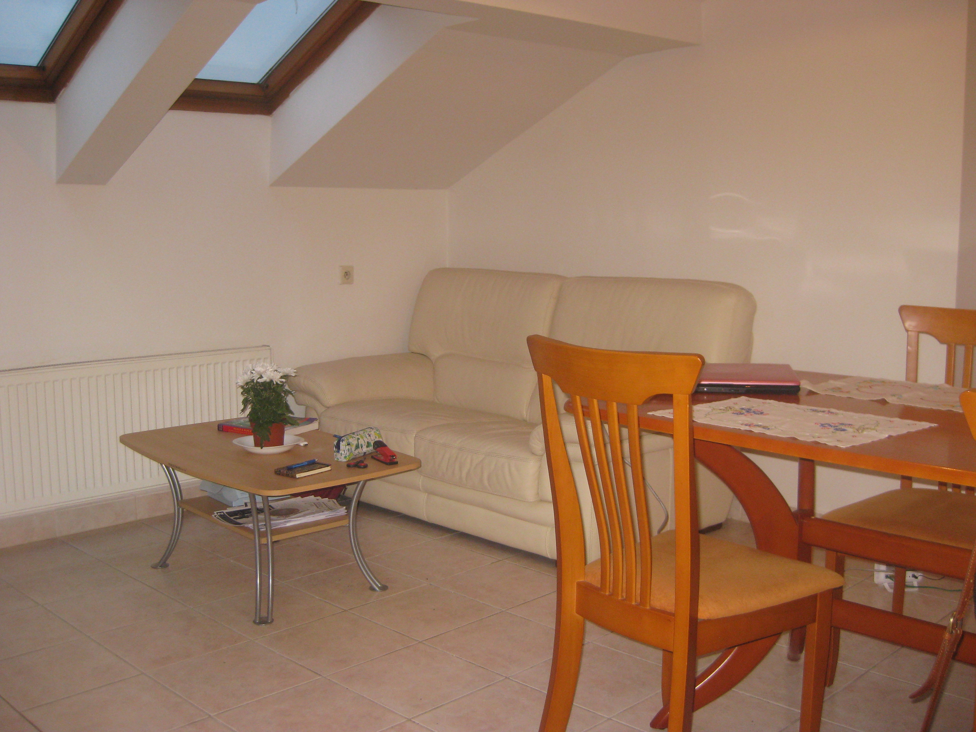 We’ve only been living here for about a month. We found it two days after we arrived in Prague, and moved in two days after that, which was better than we’d expected. It’s the biggest, nicest kitchen I’ve ever had, and I love it. It looks like there’s loads of space, but actually the sloping ceiling to the right means that we don’t get much use out of that area (and I will let you imagine how many times I bang my head on there every day).