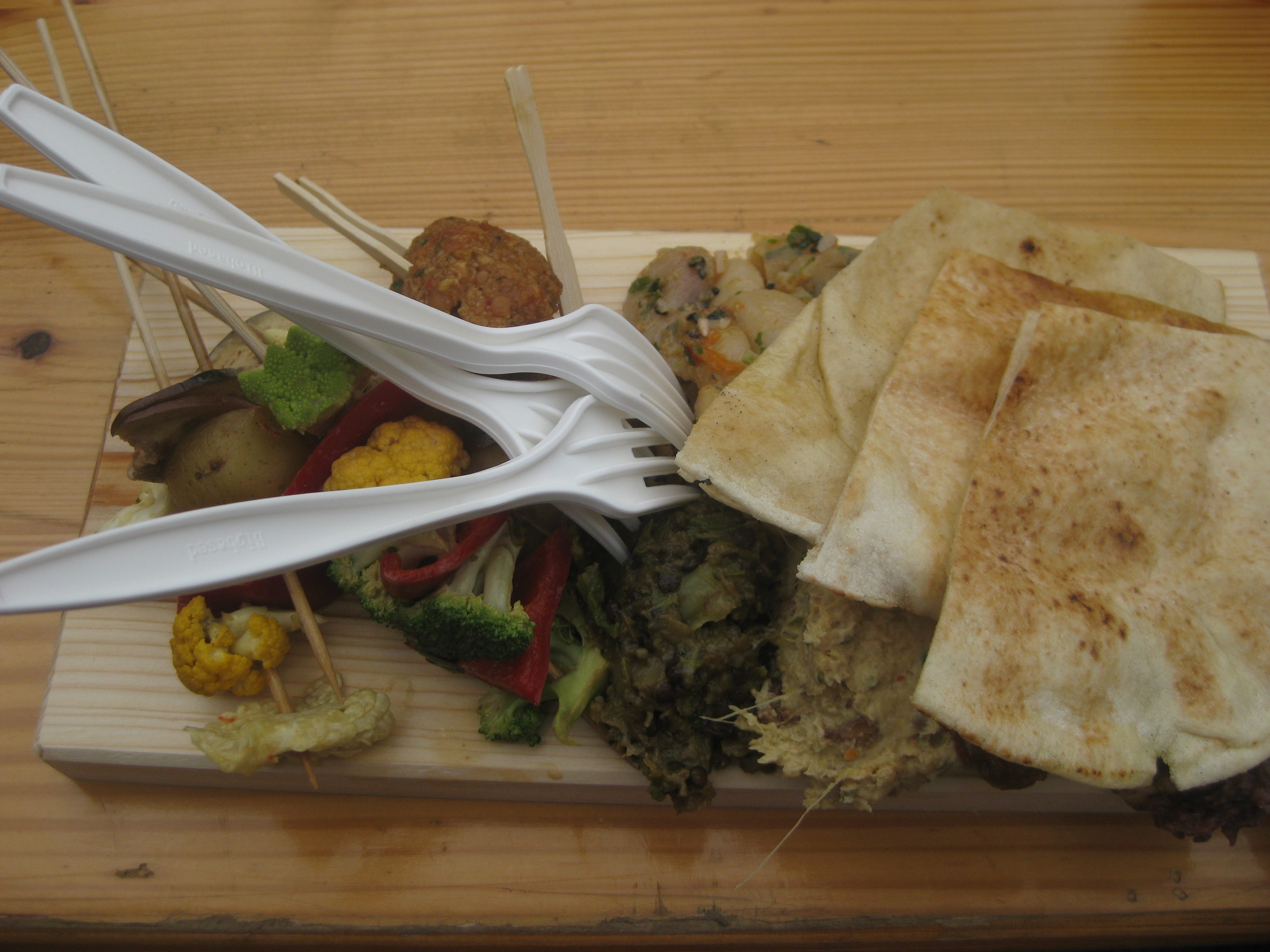 It’s no secret that I loved participating in Vegan MoFo, so I was delighted when Jennifer at My Blissful Journey set up a little off-season MoFo community of friendly, dedicated bloggers. She’s set us a little MoFo-esque prompt to get us started, and it’s sufficiently open to allow us all to interpret it as we like: Pick 3 Things. Well, picking three things is precisely what I did at Vegefest Food Festival in Prague a couple of weekends ago: I picked three tasty plates of food, and here they are in all their glory.