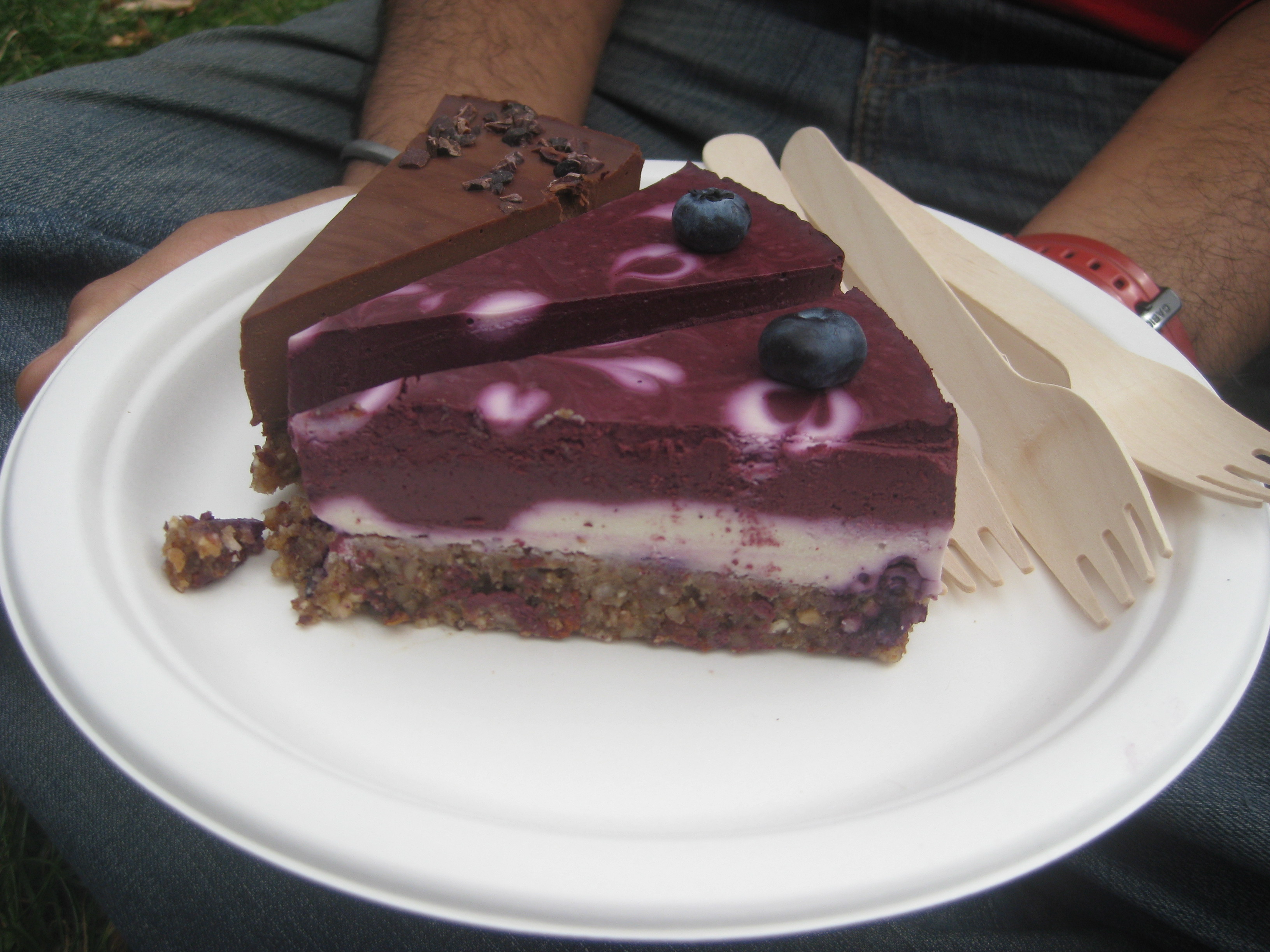 And finally, it was time for dessert, and we returned to Raw Deli for that. My mum and Dr HH had the blueberry cheesecake. They agreed that it wasn’t quite as tart as they would have liked, but had good, juicy berries. Unfortunately, they both got a bit of nutshell in the base, but they were undeterred. I had the chocolate cheesecake, and felt like I won that round: it was chocolatey without being too rich. Both varieties had a delicious base, but the mix itself was too heavy on the cream cheese – the balance wasn’t quite perfect. Nevertheless, we left with happy, full bellies, and I’m looking forward to visiting Raw Deli proper in the city centre.