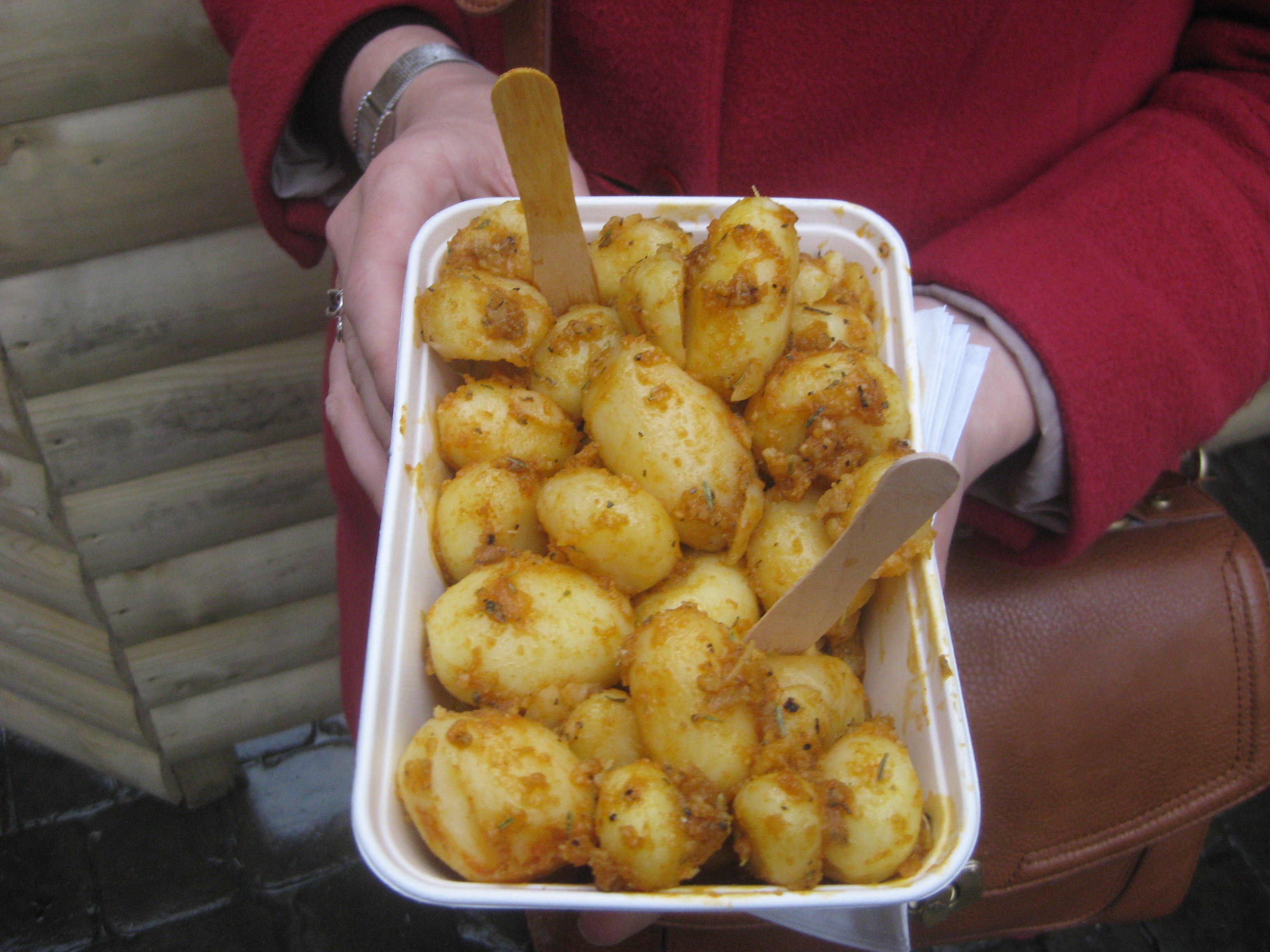 This year I was fortunate enough to visit the Christmas markets in Prague, Budapest and Manchester. While they were all exciting and festive, Manchester remains my favourite. First of all, the big Santa presiding over everything warms my heart. And secondly, it has vegan options! For the last two years, my dish of choice has been these garlic potatoes from the King Street section of the market. They’ve got a good kick to them and are obviously extremely filling. For other vegan options, there’s the Italian stand in the main square and the Dutch cookie people’s windmill biscuits.
