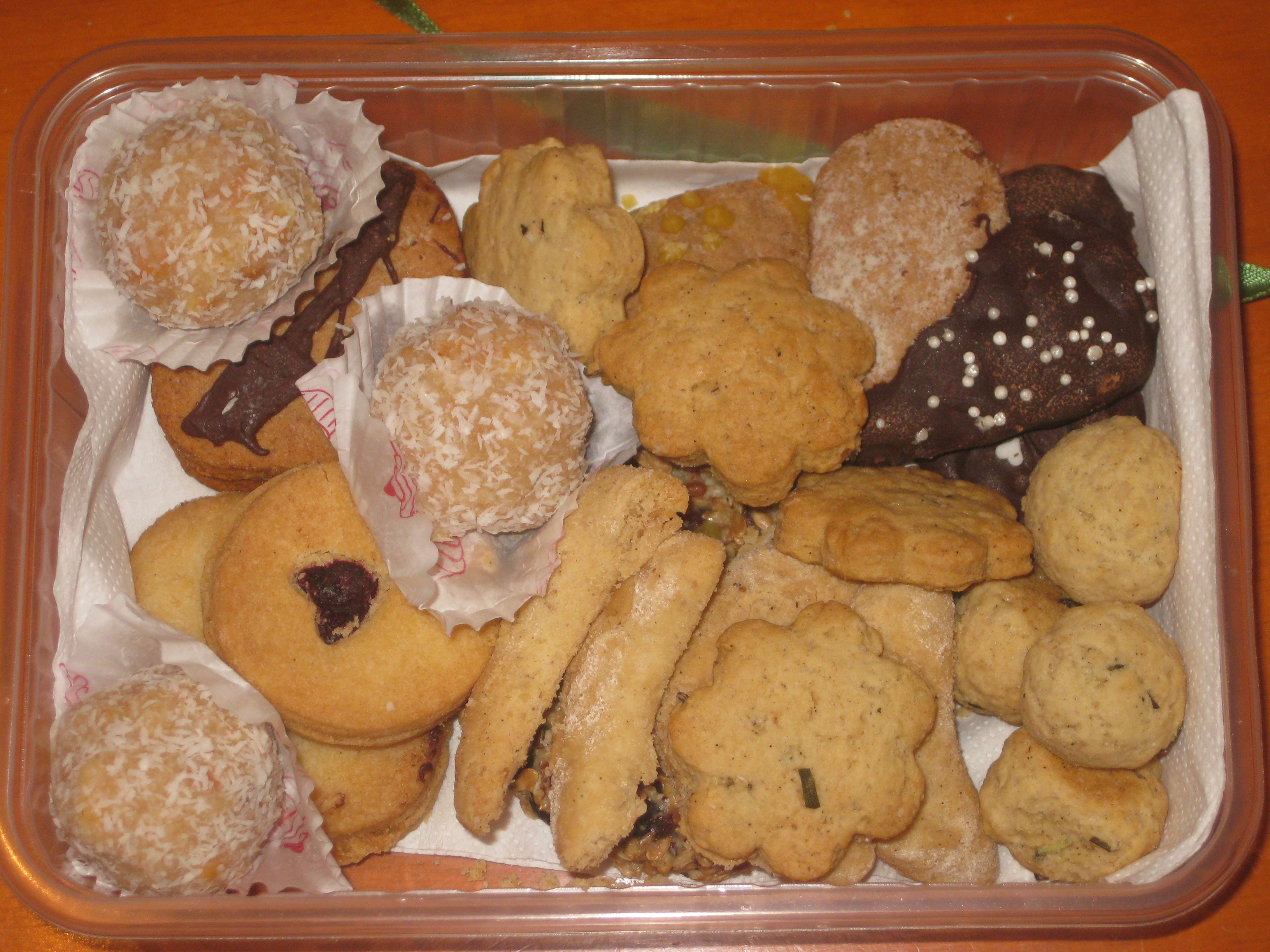 I don’t know the Italian version, but I wouldn’t be surprised if they’re similar. Some of the biscuits were similar to German lebkuchen, others were quite savoury with some herbs, and there were a few sandwich cookies as well, with jam and chocolate in the middle. A very good variety!