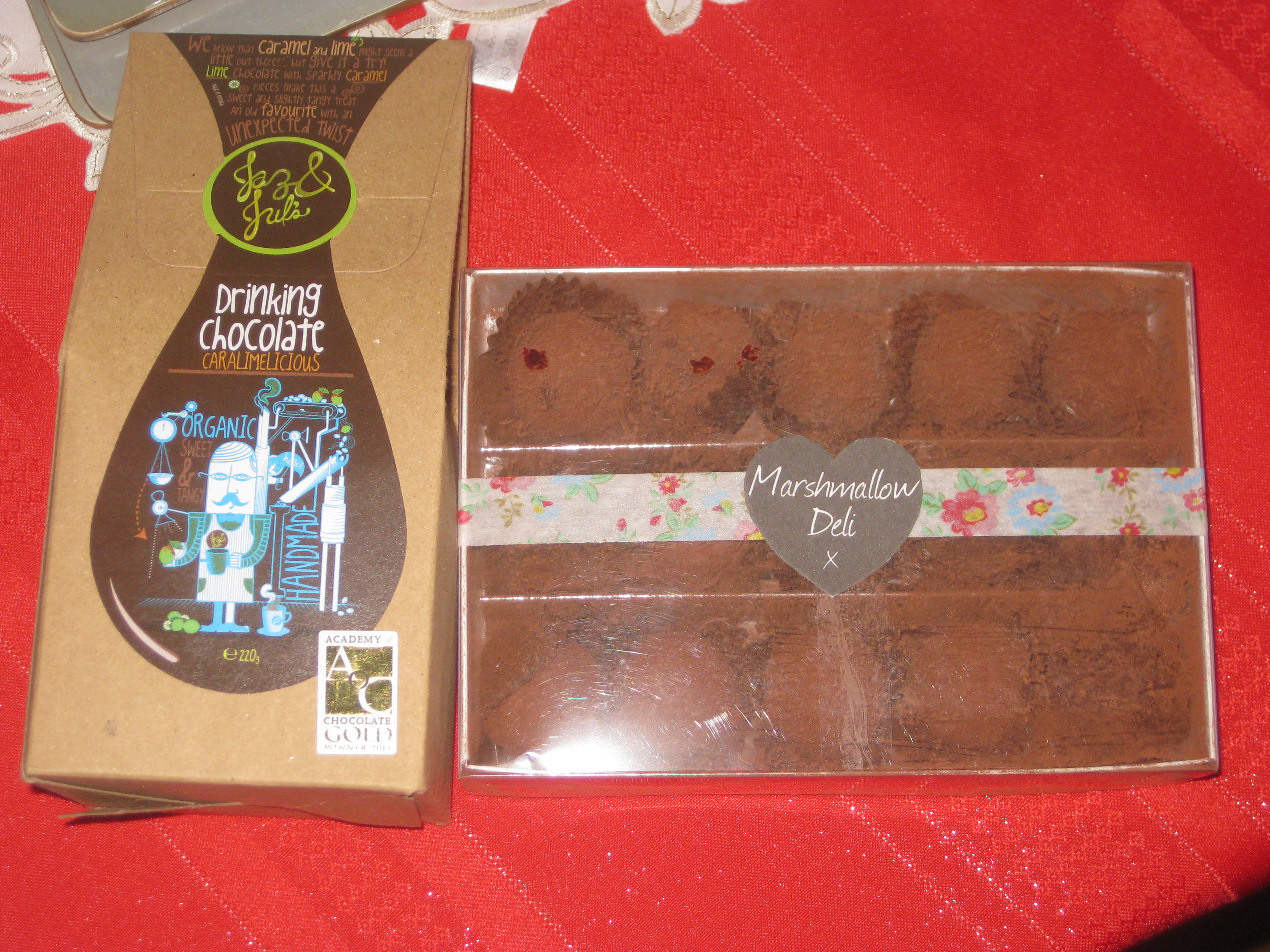 And of course, some chocolate. I first read about Marshmallow Deli over on another vegan blog, Tea and Sympatico. After checking out their vegan page, I couldn’t resist and invited my mum to spend some Christmas money there. She came through with this caramel hot chocolate (it’s beautiful!) and some salted caramel truffles. They are so decadent!
