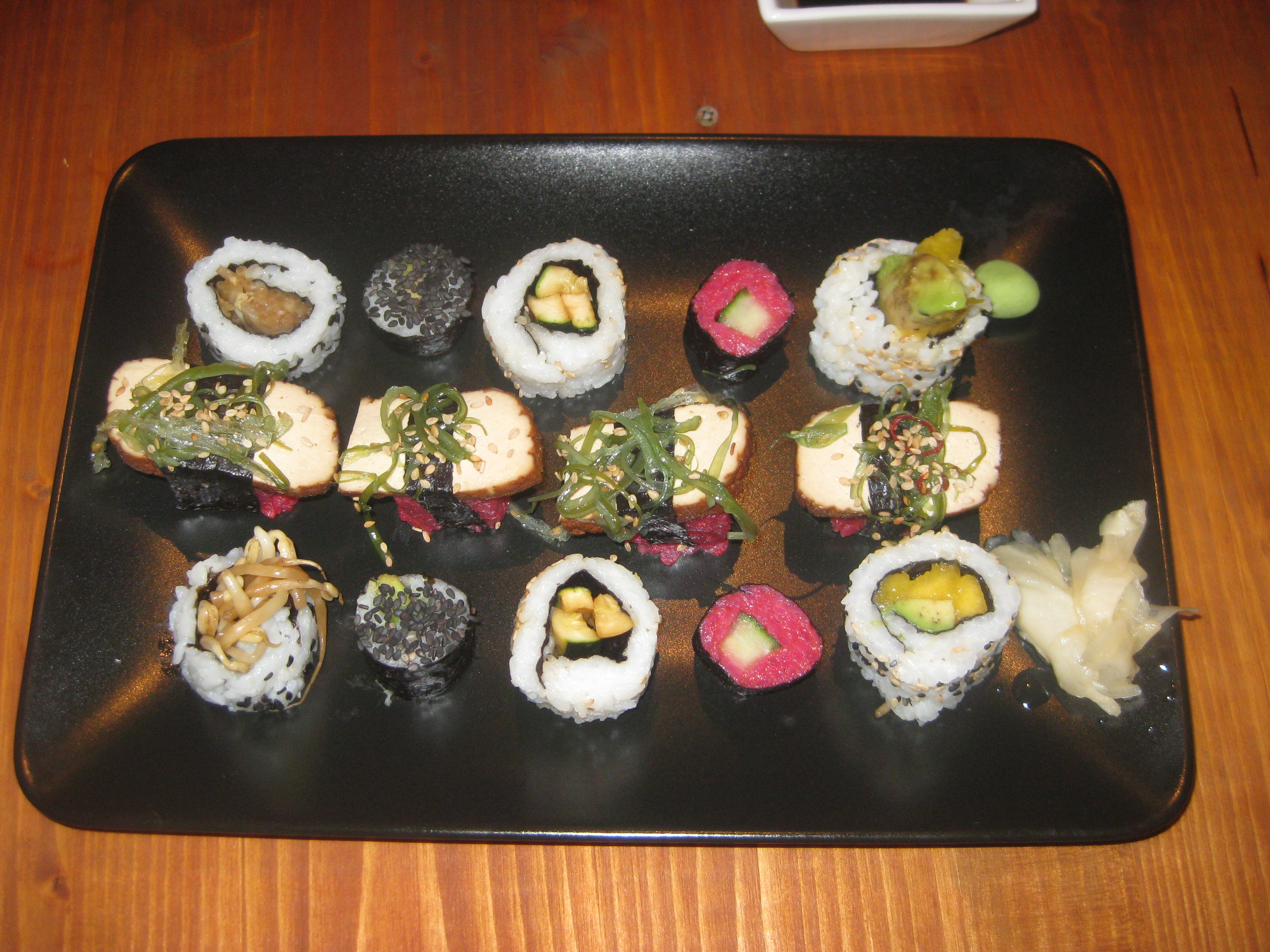 I love sushi!  This year I was bold enough to make my own on several occasions, which is just as well because I didn’t have it in restaurants that often.  This all-vegan sushi restaurant in Vienna was fantastic.  There were lots of different kinds, all of them delicious.  It was also a cozy little place, pretty quiet in the early evening, and a nice laid back place to eat after a day on the go.