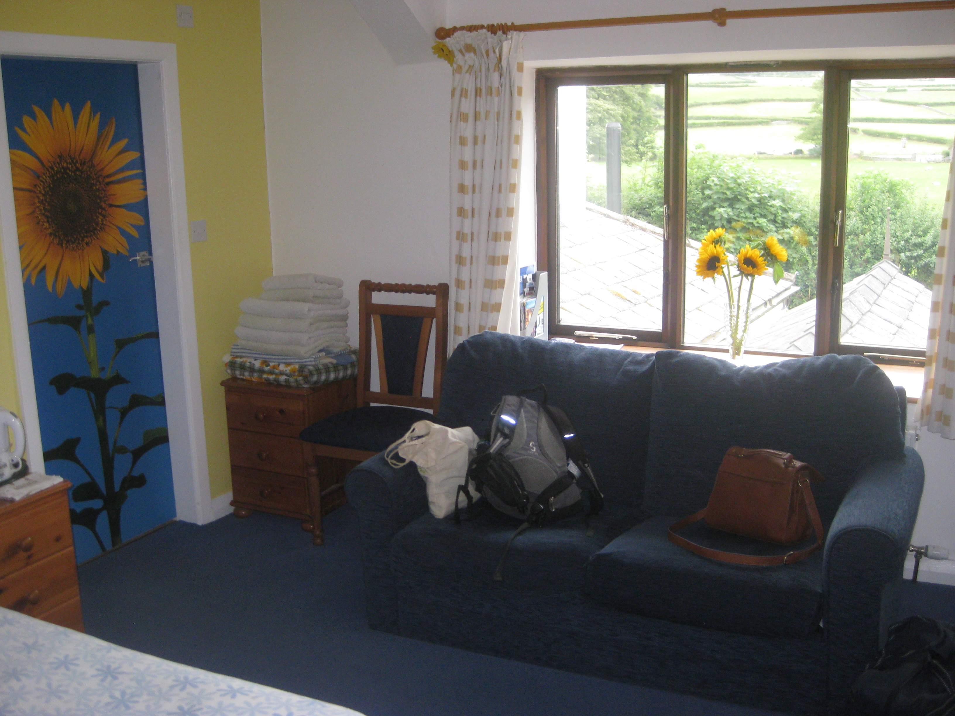 Usually Dr HH and I are all about Airbnb, but this time we decided to splash out on our accommodation, the all-vegan Fox Hall B&B near Kendal.  It was quite small, but very welcoming.  As you may deduce from the decor, we were staying in the Sunflower Room.  It was a bright, airy room, and the bathroom was stocked with vegan shower gel and handwash, which is always a good sign.  It’s possible to order an evening meal in advance, so we had done that the day before and ate almost as soon as we arrived.