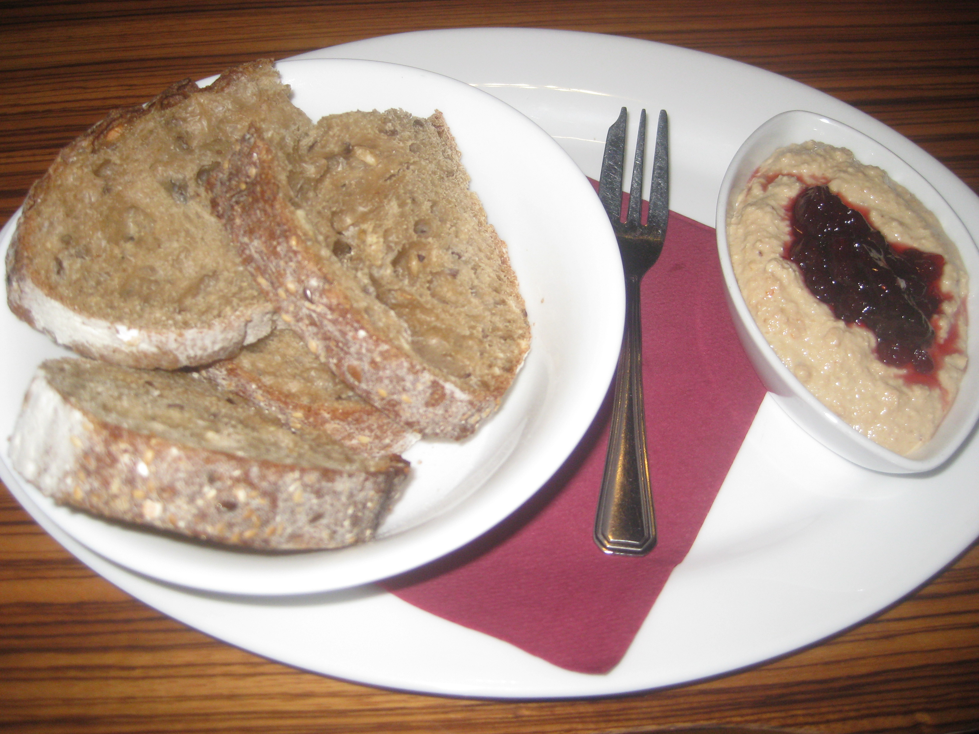 The food got off to a really good start. There are six vegan starters, and I tried the excitingly-named tofoie gras: a smoked tofu pate topped with cranberries and served with tasty bread. I would have preferred it without the cranberry sauce, but it was absolutely fantastic anyway. Such a great flavour! There was probably a bit too much bread for a starter, though that’s not something I’d ever imagined complaining about.