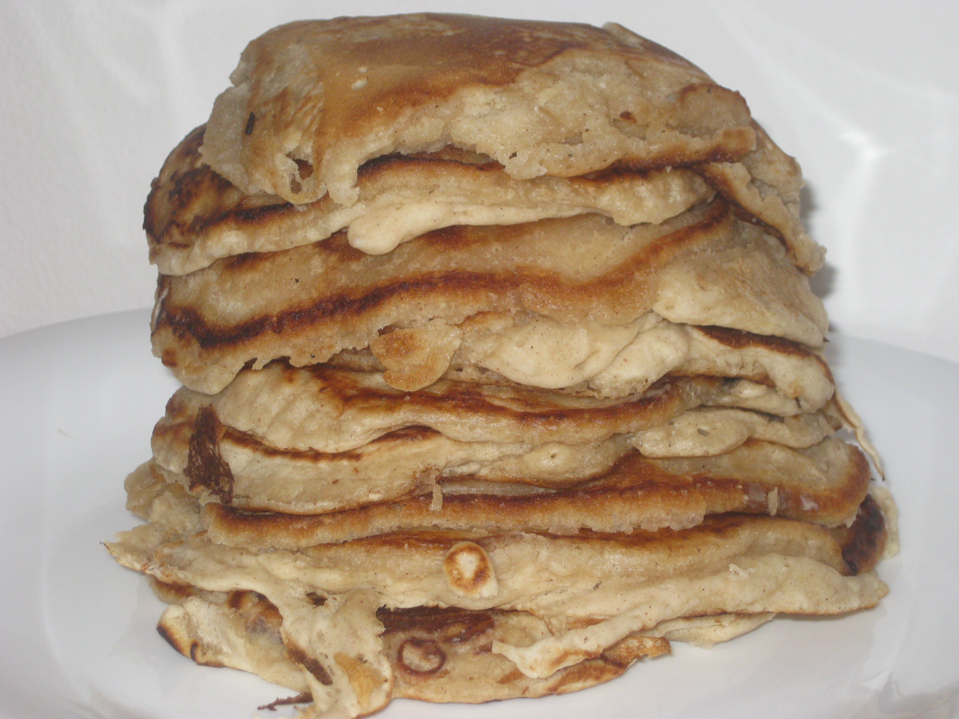 Alas, there is no breakfast section in the book.  This is devastating to me.  However, there were pancakes for dinner listed amongst the main courses, so I immediately put them on the to-do list.  Still buzzing from his pancake success with last month’s Thug Kitchen, Dr HH eagerly volunteered to make them one Sunday morning.  We replaced the blueberries with chopped dried apricots, and used oat milk instead of water – we added a little more liquid than recommended as well, to get the batter the right consistency.  They made good fat pancakes, though pancake-novice Dr HH said he’d found the Thug Kitchen recipe easier to work with.  Still, they were tasty and looked pretty, and there were no complaints from me!