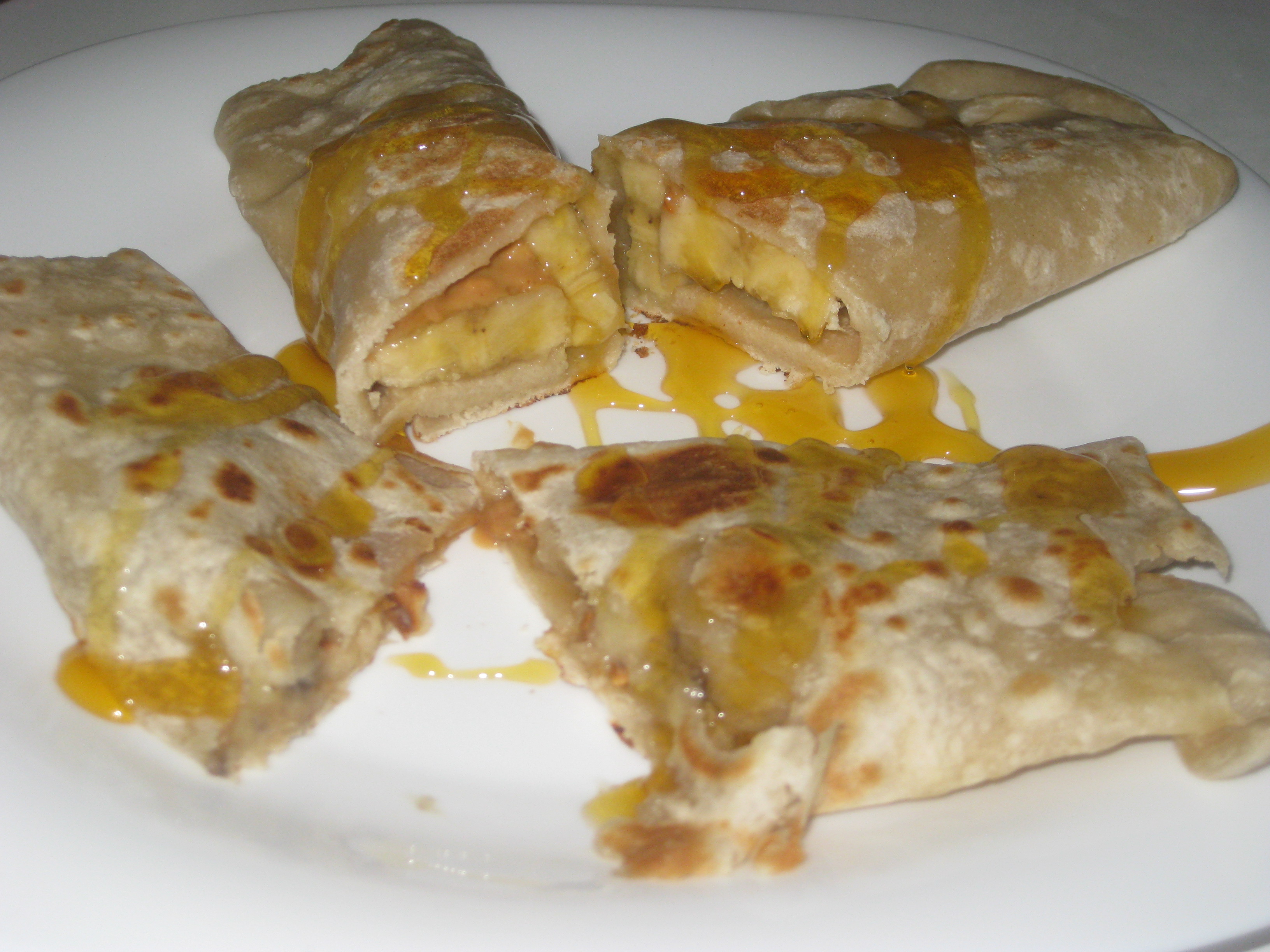 And then: “cook the pancake on one side (do not cook too much at this stage)” – give it to me in minutes! I recruited Dr HH for his kneading skills, and relied on my memories of him making Indian flatbreads, and in the end I think I did come up with a decent flatbread. But it was in no way a pancake. It was a roti with some gooey banana and peanut butter in the middle. Obviously it was delicious, but a bit too stressful for me first thing in the morning.