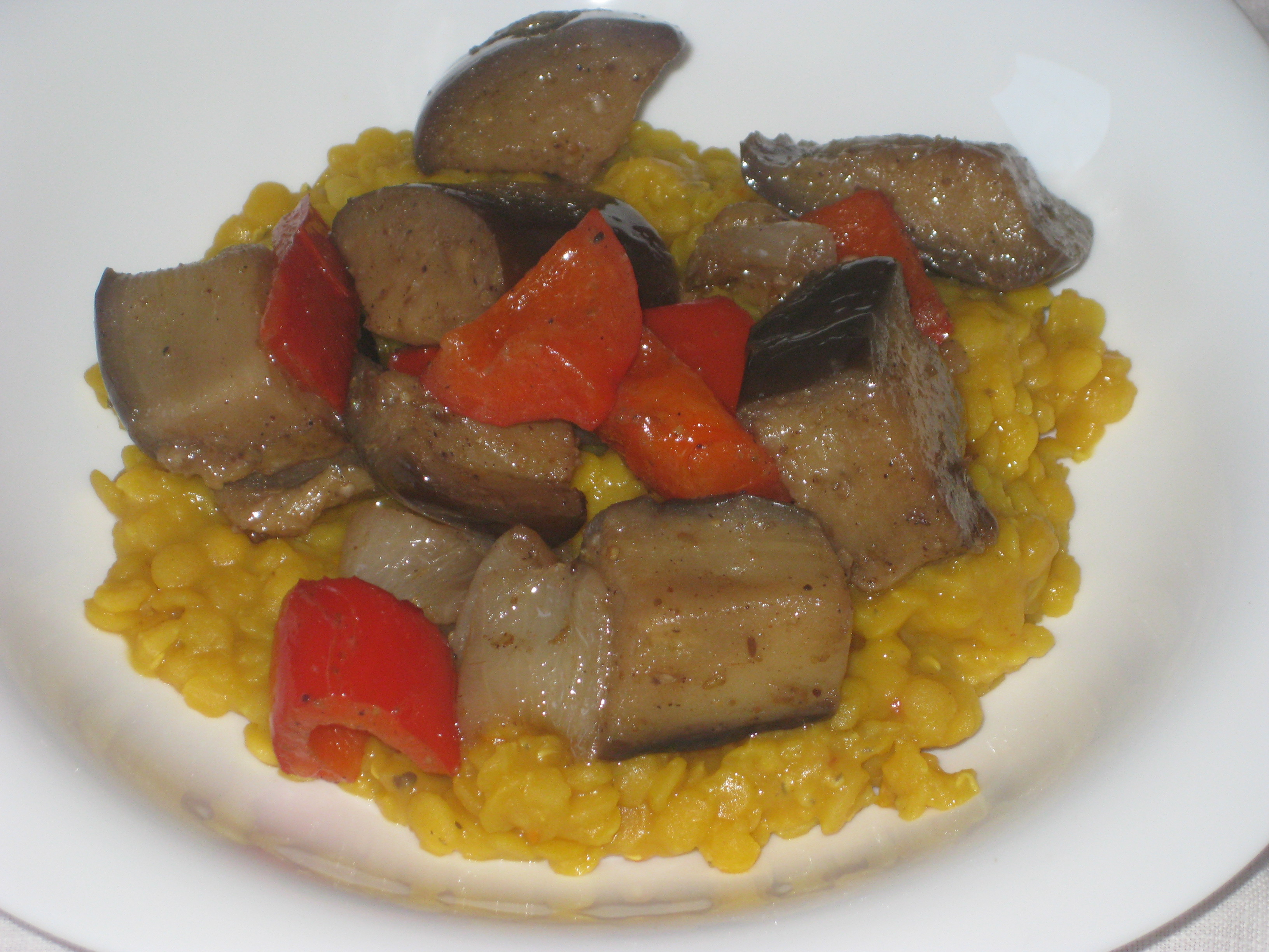 I loved the Hungry Gecko’s dal masala. The dal itself paled in comparison to the aubergine masala on top. The aubergine was meant to be cooked in 1.5 cups of oil – I scaled it back to “just” 1 cup, and still felt that was a bit excessive. But of course, it was delicious. Delicious! I also switched from the recommended green pepper to a red, because green peppers simply do not exist at my local supermarket.