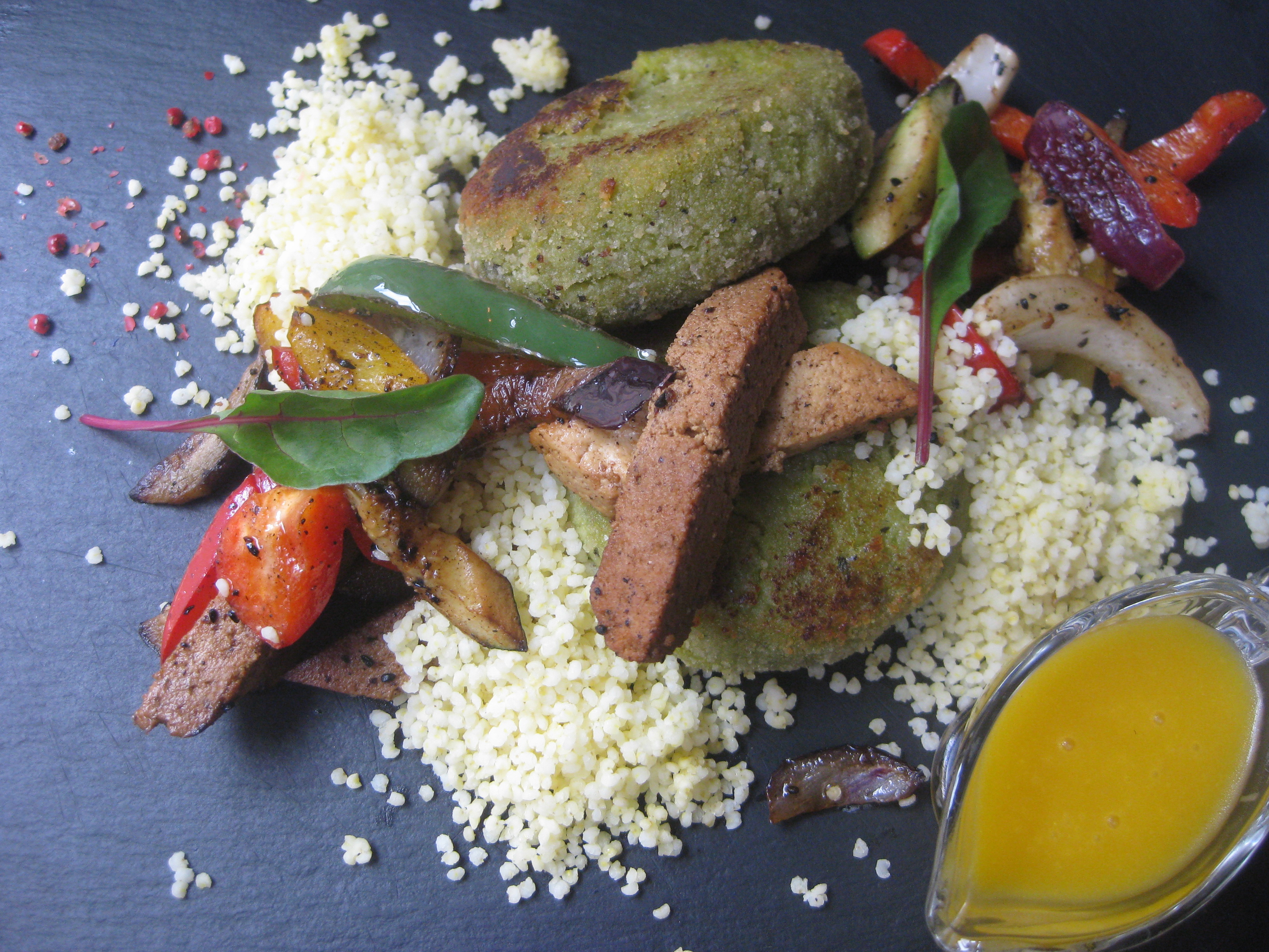 We got two cutlets, which were nice and crispy on the outside and smooth inside, and tasted great. The roasted vegetables were delicious, especially the aubergine, and I was pleased to see the sauce on the side so I could control it – I like my food pretty dry. The highlight was the fried tofu. I’ve never had such good tofu from a non-vegan place, but here we have some omni chefs who know how to season and cook tofu – it was so flavoursome. I’d really recommend this place.