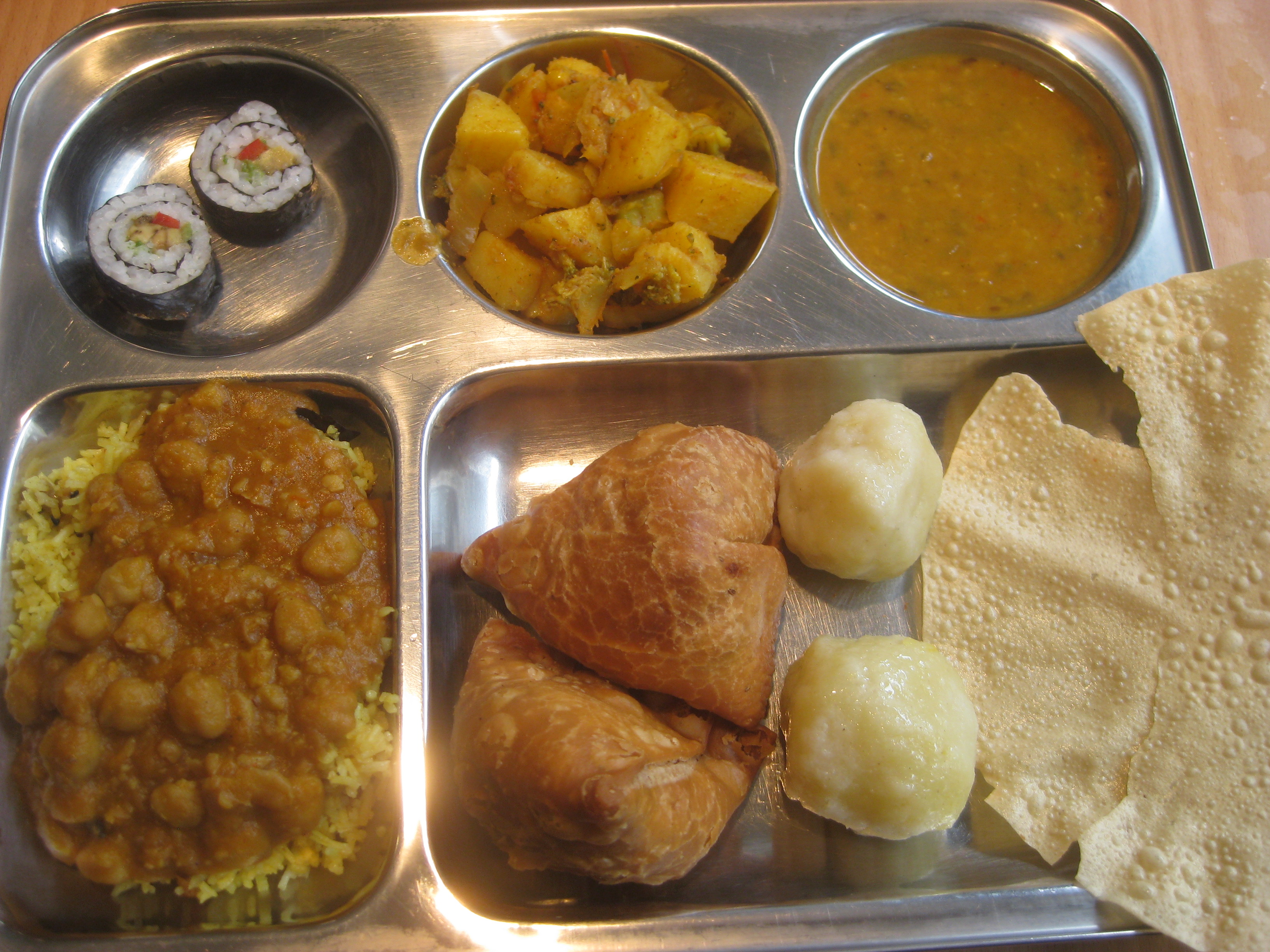 There were lots of Thai dishes as well, but I’d planned on keeping it Indian…until I saw the sushi, and couldn’t resist. We went to the branch on Belehradska and it was absolutely packed at lunchtime – people are really packed in, and it’s not the kind of place where you can linger after eating. I found the atmosphere a little stressful, but the food was very good and reasonably priced, and there was a jug of water on every table. Hurrah!