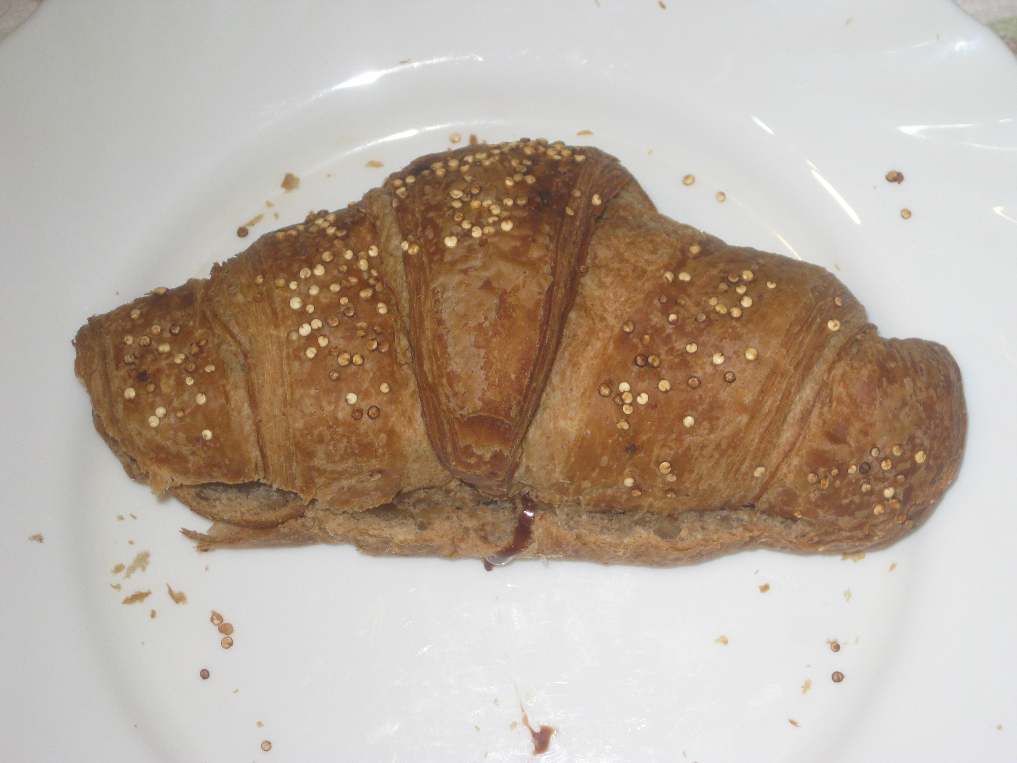 We had breakfast croissants a couple of times while we were in Madrid, once from Le Pain Quotidien and once from La Rollerie.  They look pretty similar above – I expected both places to bake their own goods, but who knows if they share a supplier?  They were both a little flaky outside, but quite bready inside.  Still, they were nice.  In both places you can get the croissant to eat in or take away.  Le Pain Quotidien has a couple of vegan options on the menu, and four muffins labelled vegan, so it’s a great spot to pick up snacks.