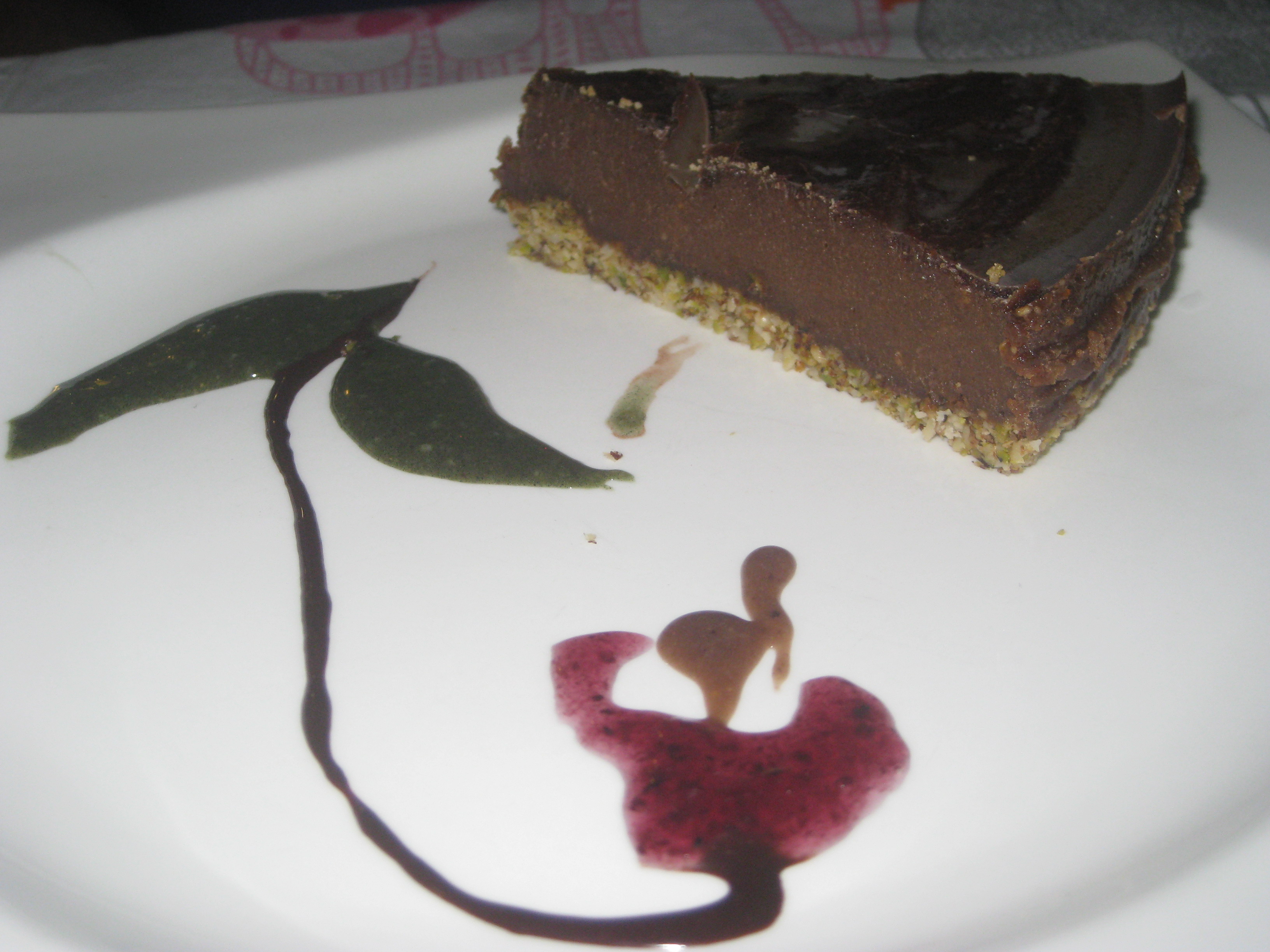 As it had gone so well, we decided to treat ourselves to a slice of raw peanut butter cake for dessert.  It was exactly as a peanut butter cake should be:  sticky and gooey, with a good crunchy base.  Alas, we didn’t realise until the bill arrived that it cost €6.50.  It was a good cake, but that’s still a pretty high cost.  Even so, we left on a high.