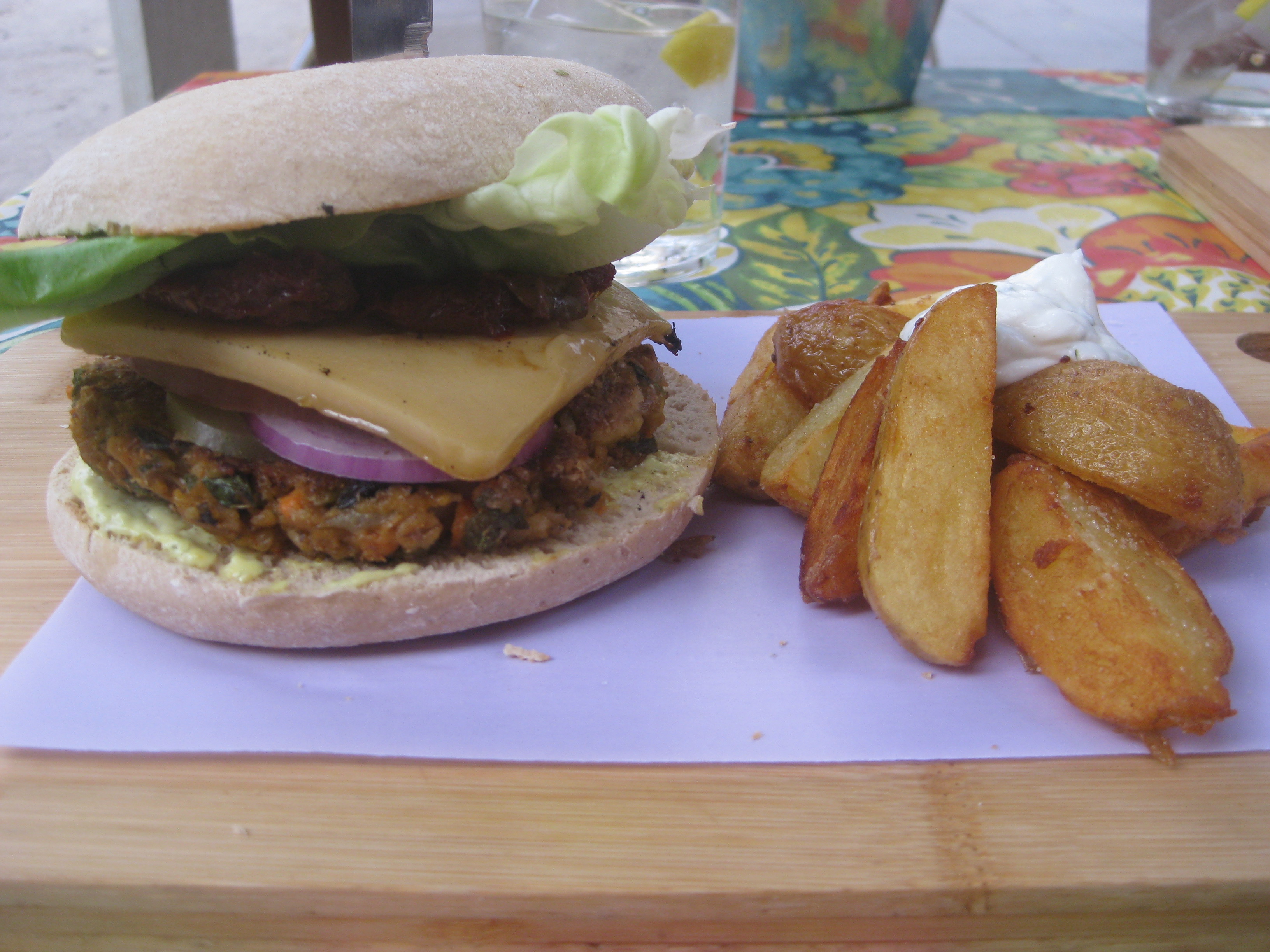 I ordered the ahumada burger, which promised smoked cheese and sundried tomatoes.  The patty was good and vegetable-based, but the highlight was the cheese – a really thick slab of it, simply delicious.  It was very good, but I couldn’t actually finish it, it was so immense.
