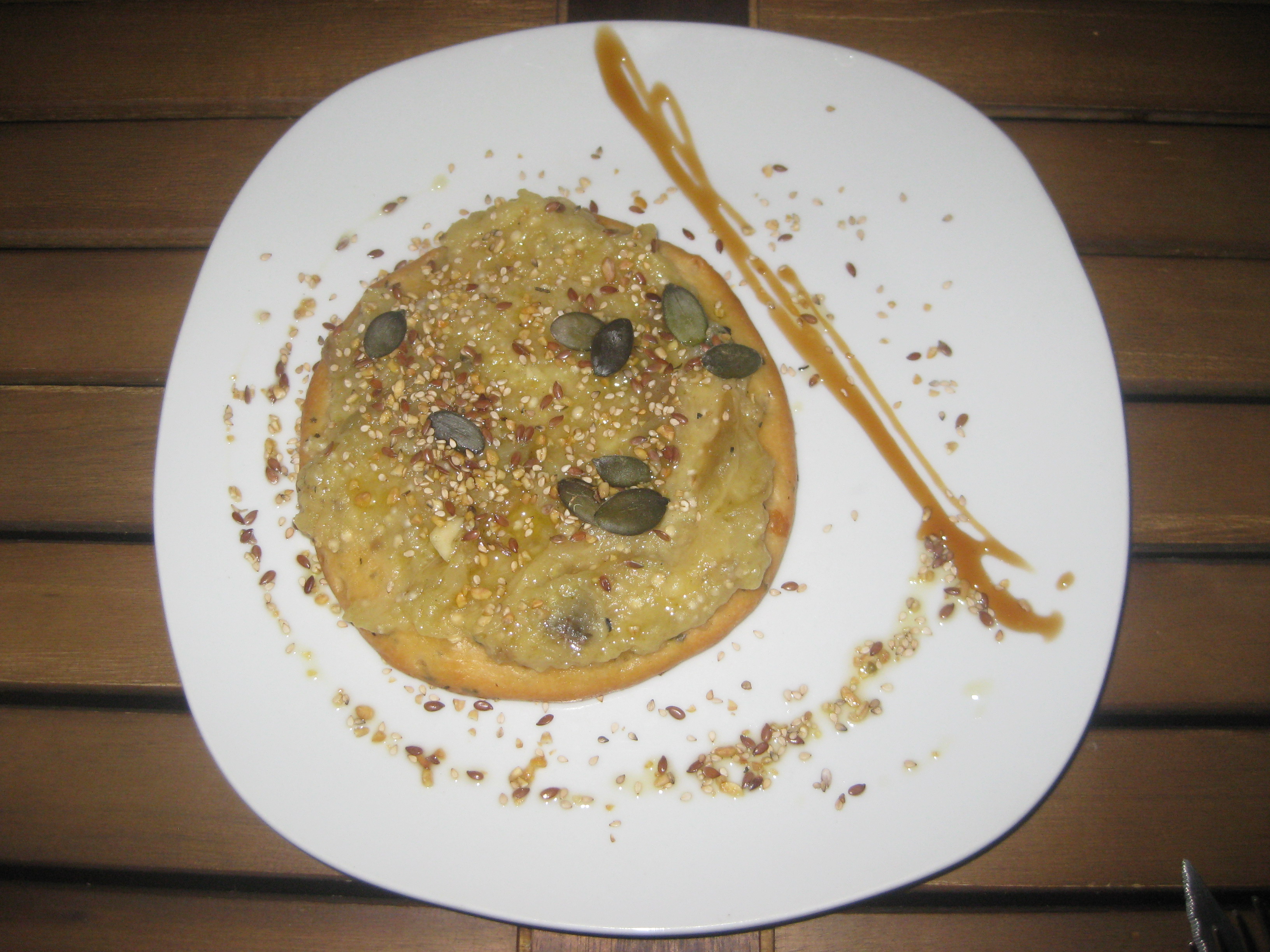 We got two tapas plates to start. The smoked aubergine spread was delicious, and the crispy mini pizza base was amazing. If you go to Valencia, make sure you get this. The croquettes are available with three fillings. We chose miso and tofu, but you couldn’t have guessed it – the texture was amazing, but the flavour was really lacking.