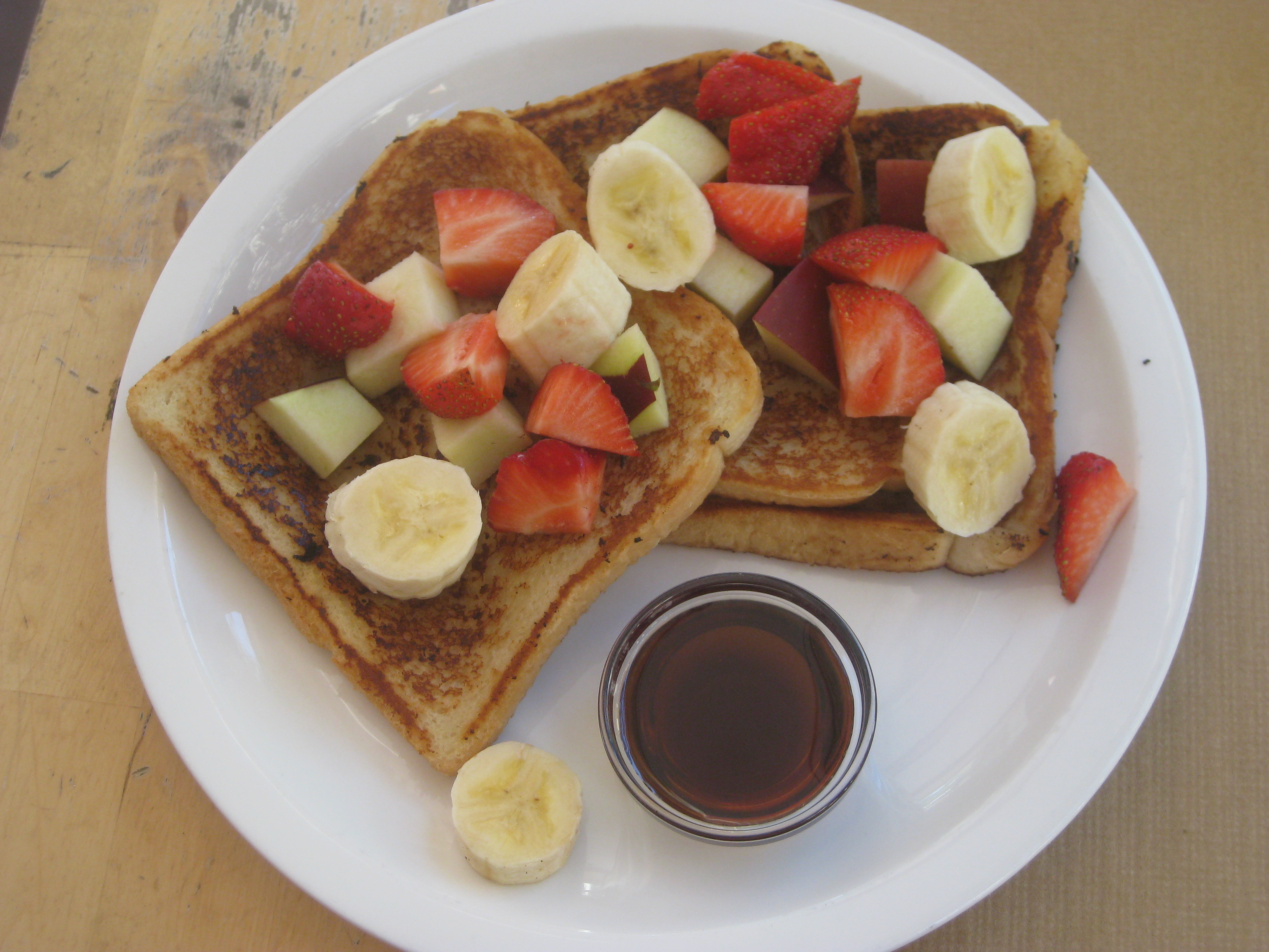 Our time in Spain was relatively light on breakfasts, but we enjoyed brunch at Dos Trece (UPDATE: closed June 2017).  It has four or five vegan brunch items and is a bright, spacious place with fast service.  I had the French toast, which was a wee bit too blackened on the bottom for my liking.  Still, it was delicious with the fruit and maple syrup.