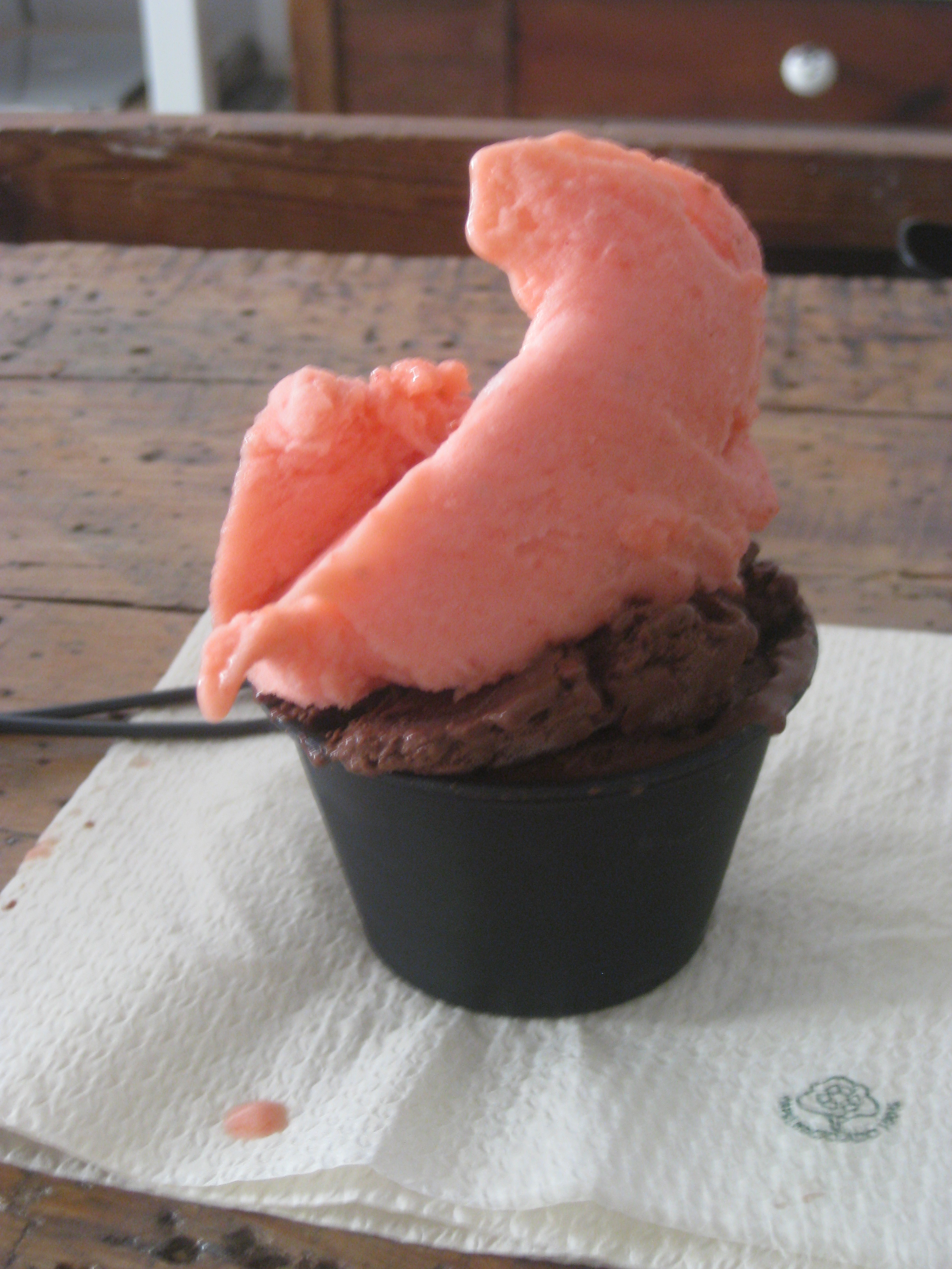And while you’re picking up your picnic, you should stop in at Uay Balam just down the road.  We saw its sign proclaiming some vegan treats in this gelateria and dessert shop, so we made a little detour to investigate.  There were five flavours of vegan gelato (chocolate, strawberry, peach, watermelon and grapefruit), and we were given a free spoonful of each to help us decide.  The cones weren’t vegan, so we enjoyed a little cup piled high with rich chocolate and refreshing strawberry gelato.  It was fantastic!