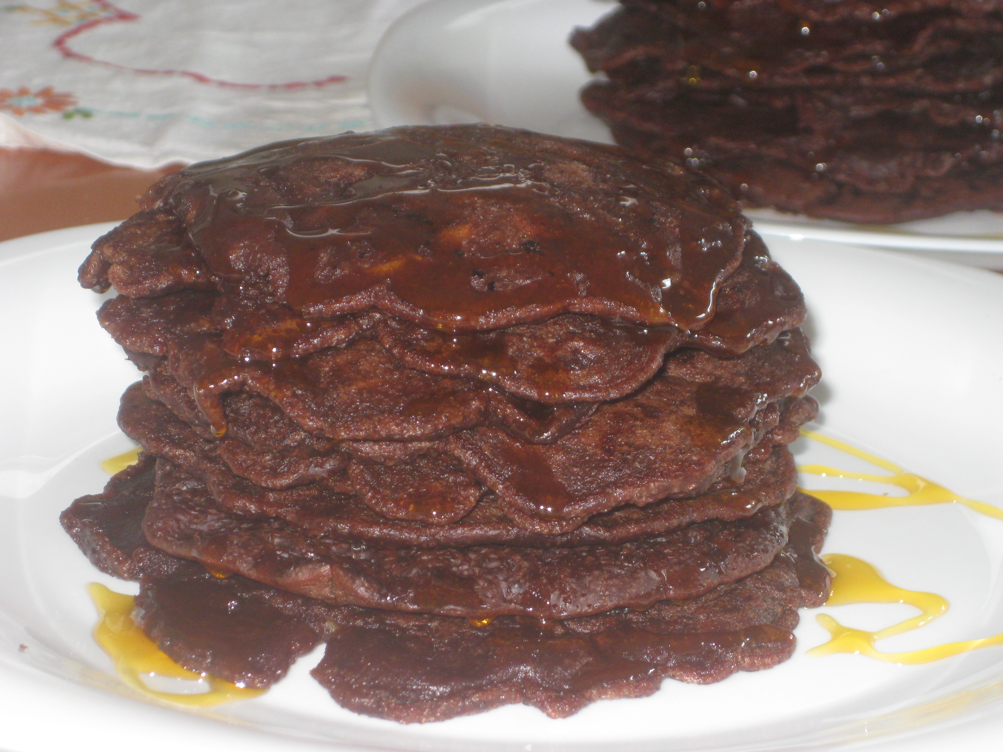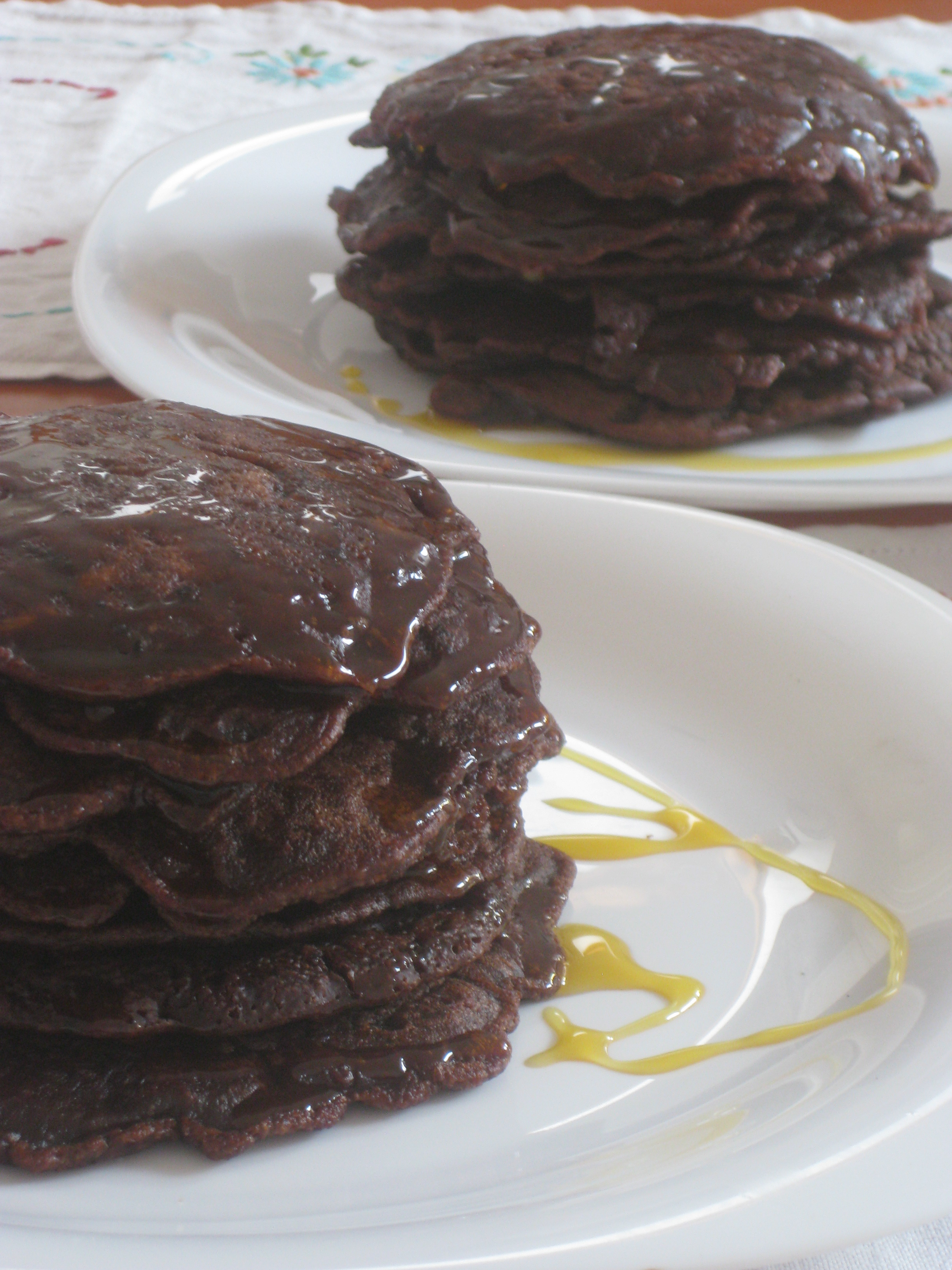 When starting with breakfast, who could look further than pancakes? The Double Chocolate Gluten-Free Waffles Pancakes, to be precise. The recipe is for waffles, but I just used regular plain flour and thinned out the batter a little to made pancakes; delicious, rich, decadent chocolate pancakes. WIth cocoa powder and chopped chocolate in the batter, these pancakes were glorious. They were a bit rich so it may have been a good idea to serve them with some fruit along with syrup. The recipe called for me to curdle my almond milk before adding it to the batter but I have no idea why. Answers on a postcard please.