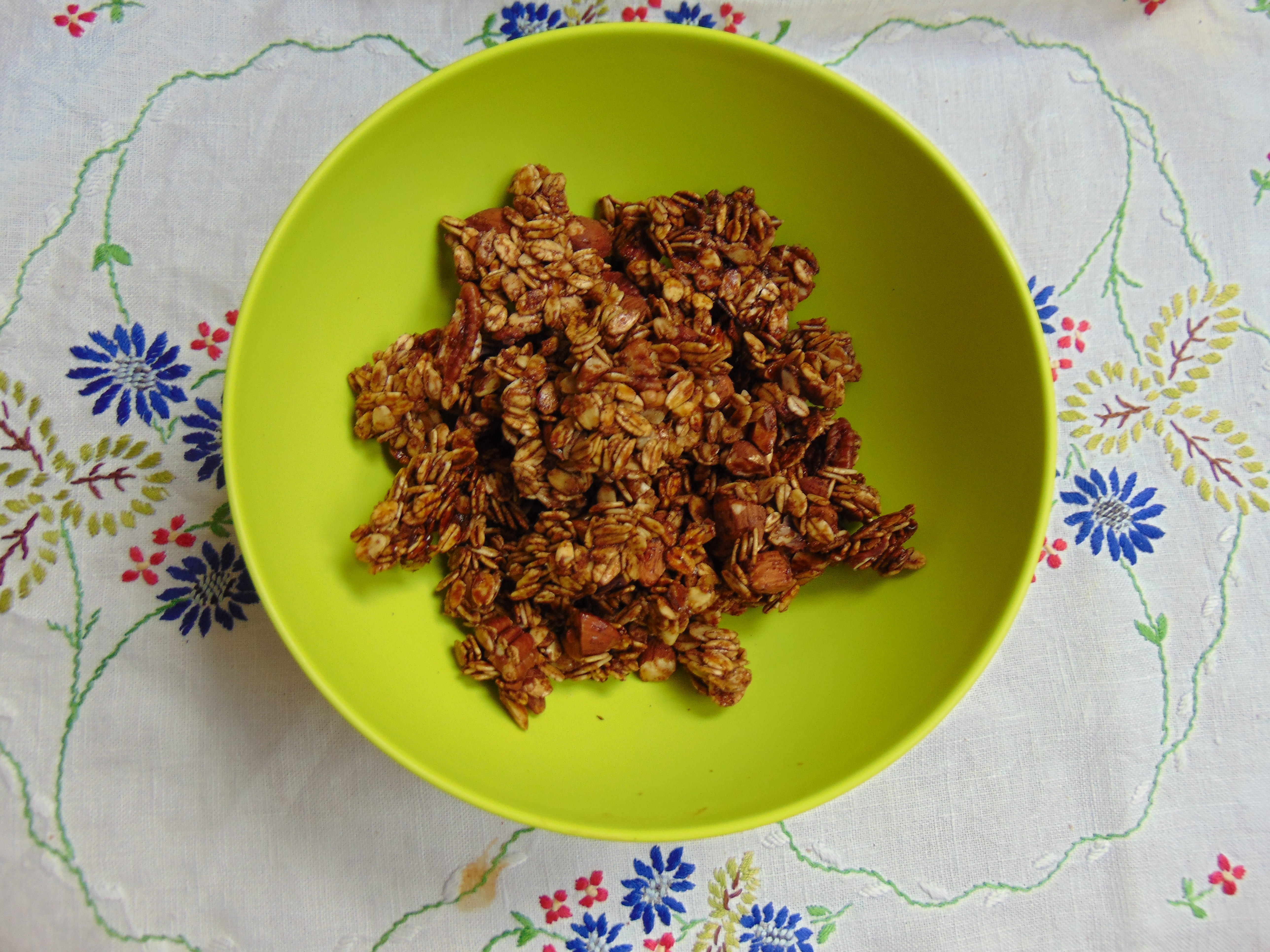 The Gingerbread Granola had a really Christmassy feel to it. The combination of molasses, ginger and cinnamon gave this a lovely warmth. I managed to make giant oat clusters that would be worthy of presenting to the granola gods as breakfast. The downside of using molasses was that everything was brown from the start so it was a little harder to tell if things were burnt or not.