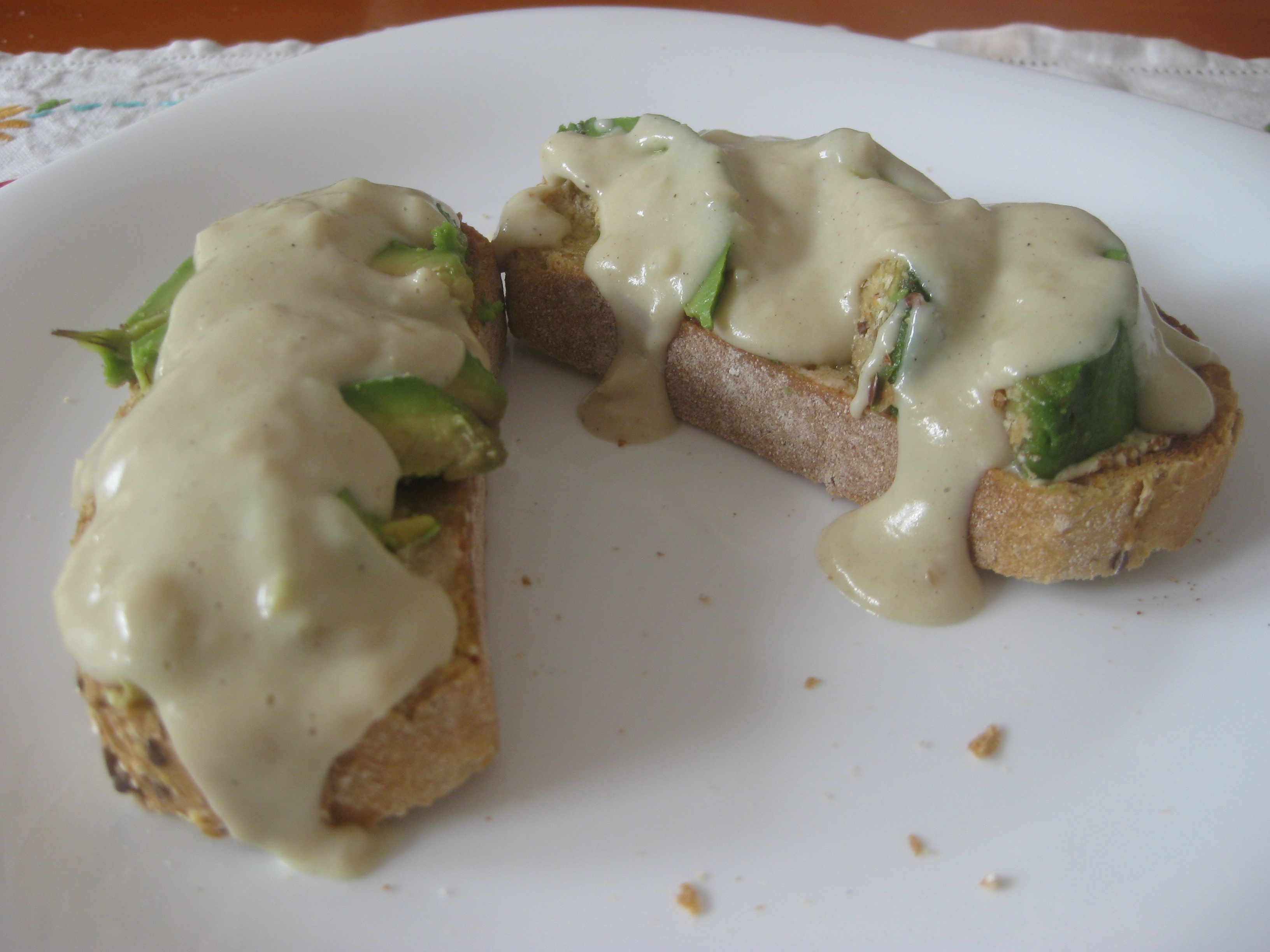 The Savoury Eggless Benedict is essentially a fancy avocado on toast. The recipe included a slice of fried tomato, but neither of us is particularly keen on big slices of tomato, raw or cooked, so I decided to just leave that out. I have no idea what Hollandaise sauce is supposed to taste like so I can’t comment on how authentic it was but I can say that this faux sauce (Hollanain’t!) was delicious. It was thick and creamy. Tahini is suggested as an optional ingredient, but I think that the sesame flavour coming through was a real highlight of the sauce and would strongly recommend adding it.