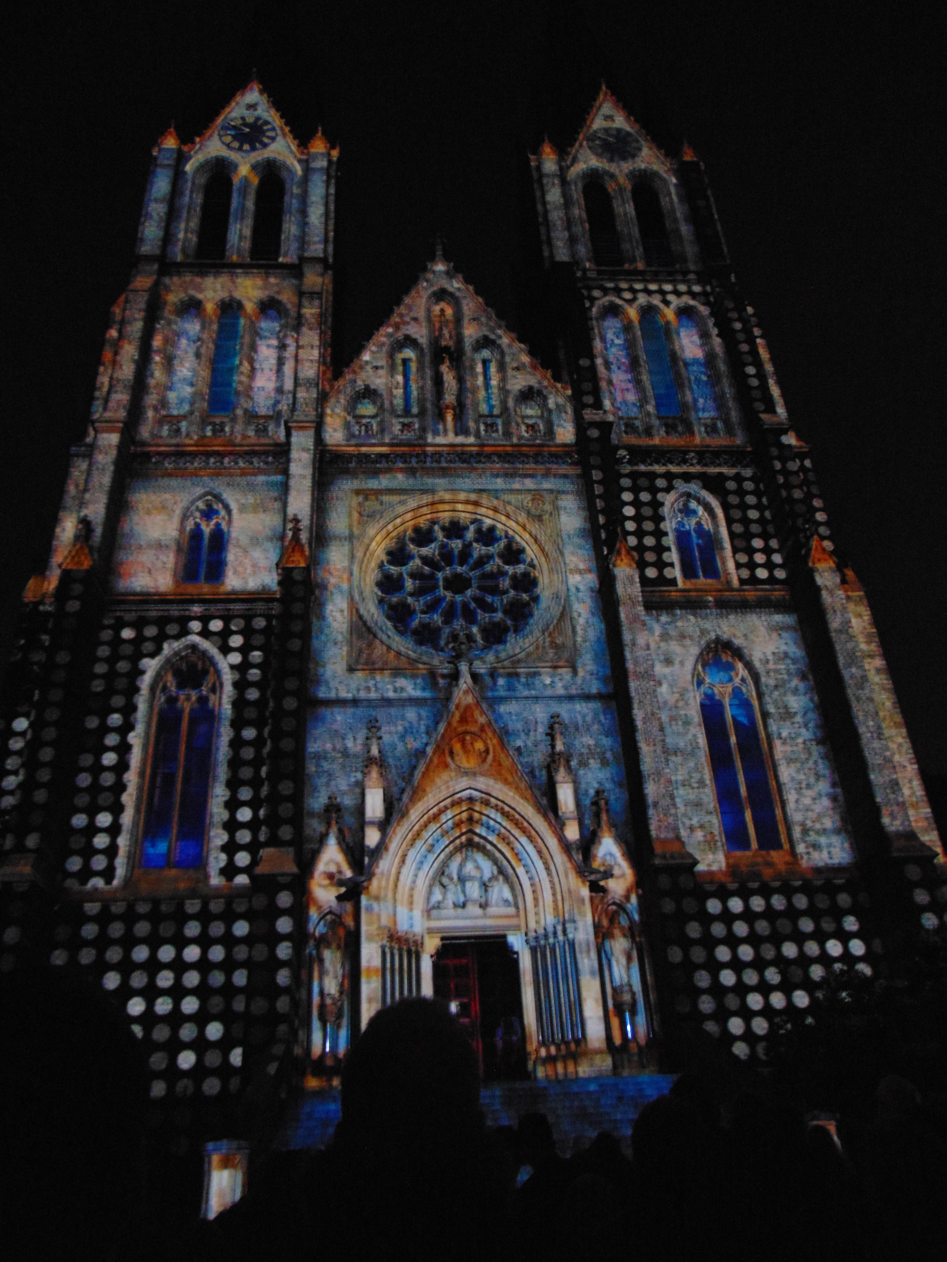 And finally, the true mark of autumn in Prague:  Signal Festival.  This is an annual video-mapping extravaganza, with impressive light shows dotted around the city.  There’s no shortage of beautiful buildings in Prague, so any excuse to stand and gape at them for a few minutes is welcome.  We’re fortunate to live quite close to one of the best installations:  this church looks amazing on a normal day, so seeing it all lit up was quite something.