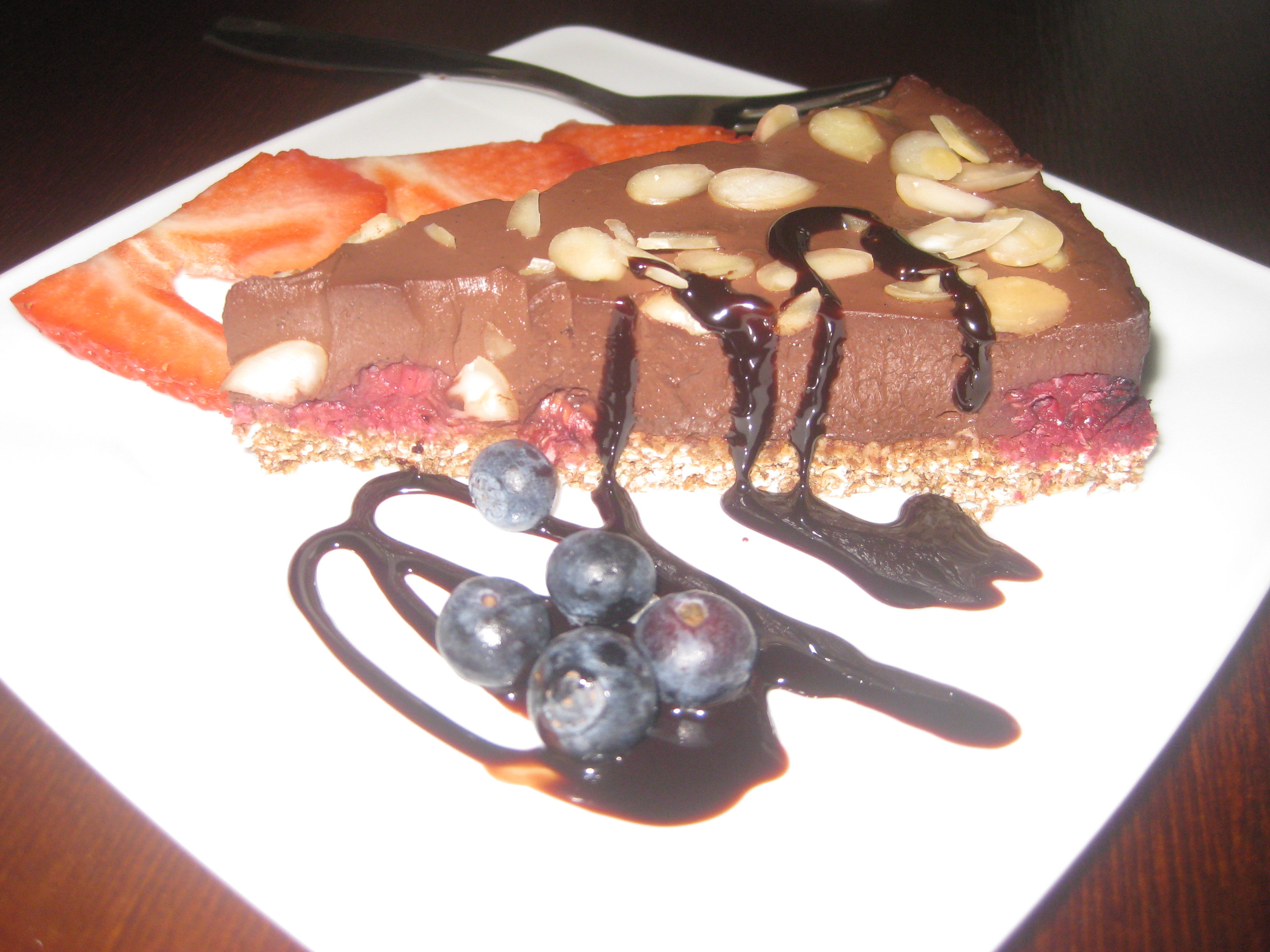 There were three vegan dessert options:  a chia pudding, strawberry millet cake and a tofurnik cake.  I went for the latter, which was a chocolate cheesecake.  Oh, it was good!  It was rich and creamy, and had a few tart berries in it.  The base was almost flapjacky, and it was topped with crunchy almonds.  I loved it!