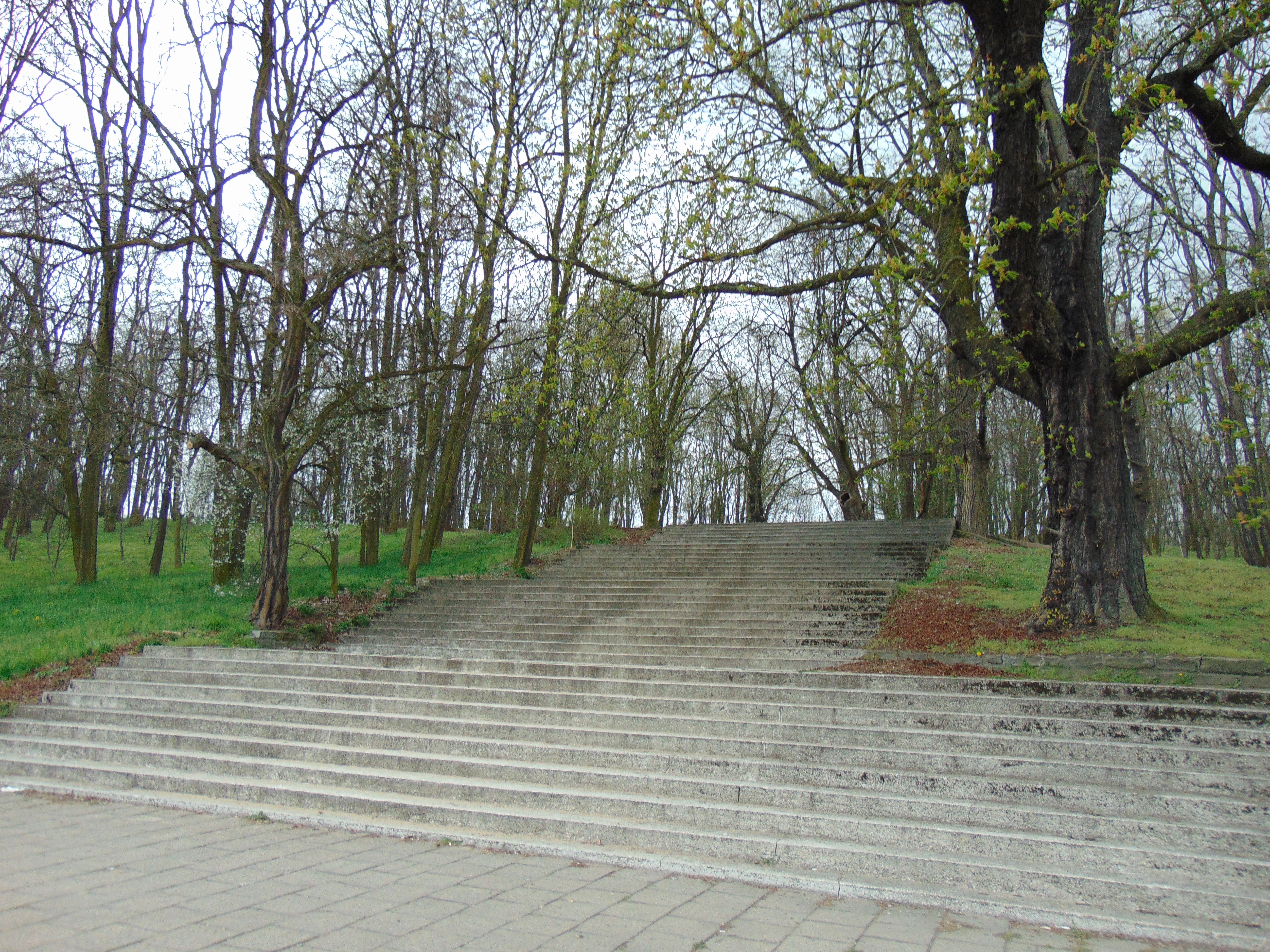 With our bellies full, we set about exploring Poznan.  It was a lovely day as we strolled around the old town, but as soon as we uttered the words:  “Let’s go to Park Cytadela!” the skies darkened and it began to drizzle.  We used to live in Manchester, so a bit of rain doesn’t deter us from outdoor activities.  But when we arrived at the entrance steps here, the heavens truly opened.