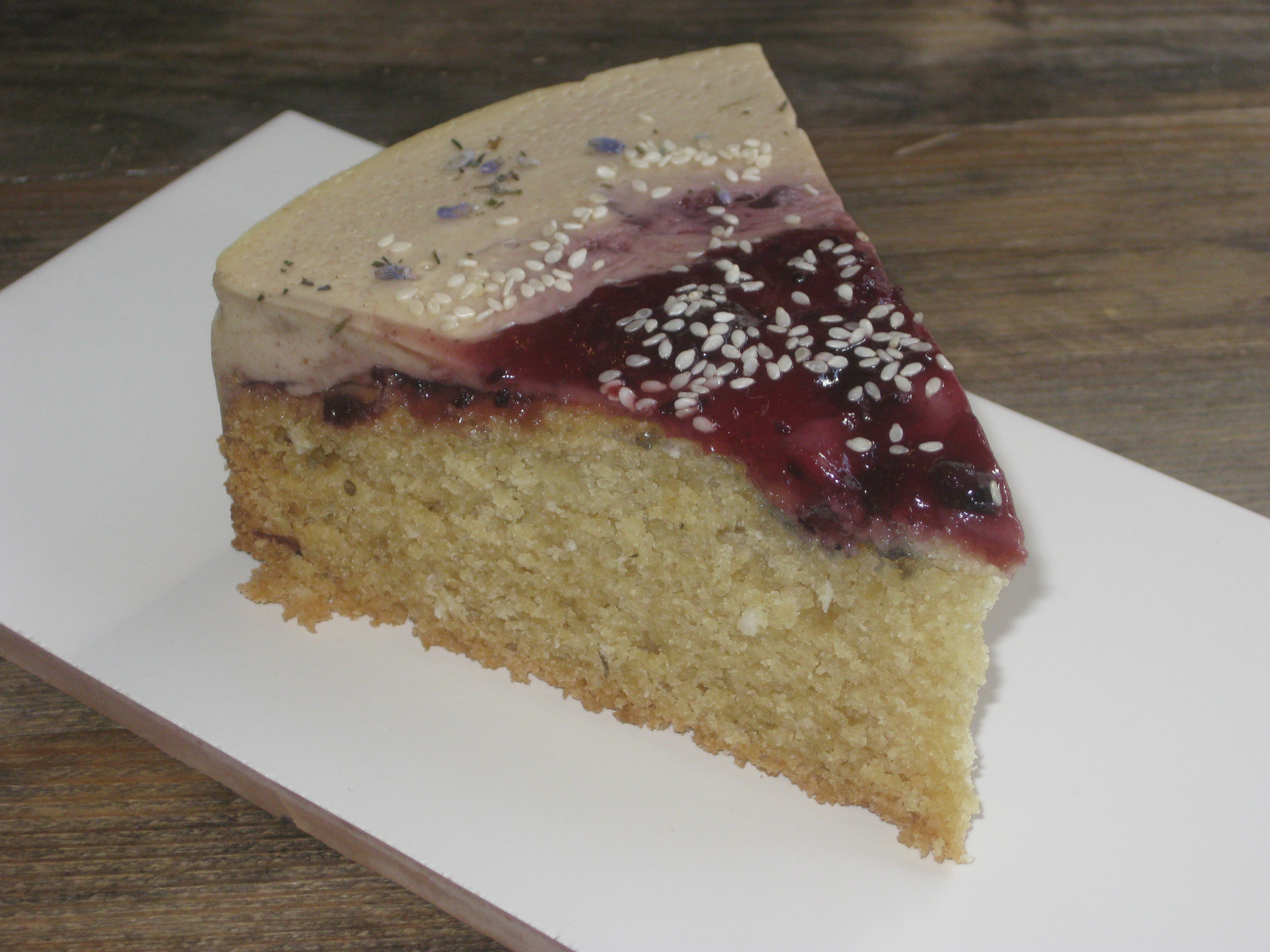 For dessert, we each ordered a slice of cake, but it was so gigantic that one to share probably would have sufficed.  The sponge was absolutely perfect, and the topping was jammy and possibly tahini-based at the back.  Whatever it was, it was amazing.