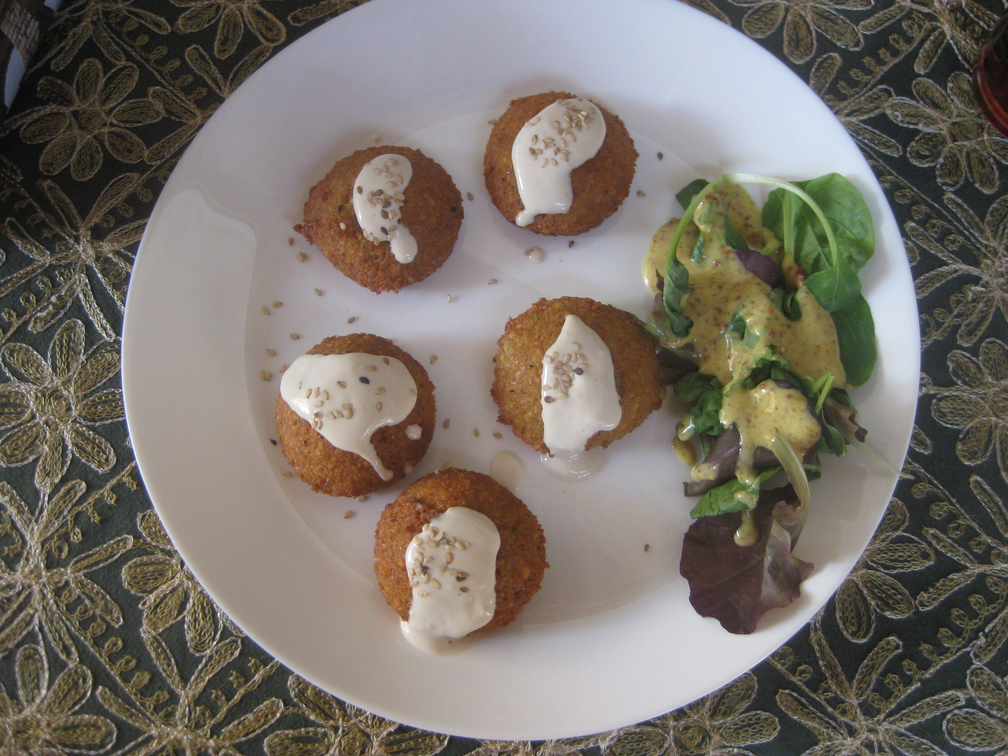 That falafel looks measly. My husband would have eaten three plates of that and still been hungry!