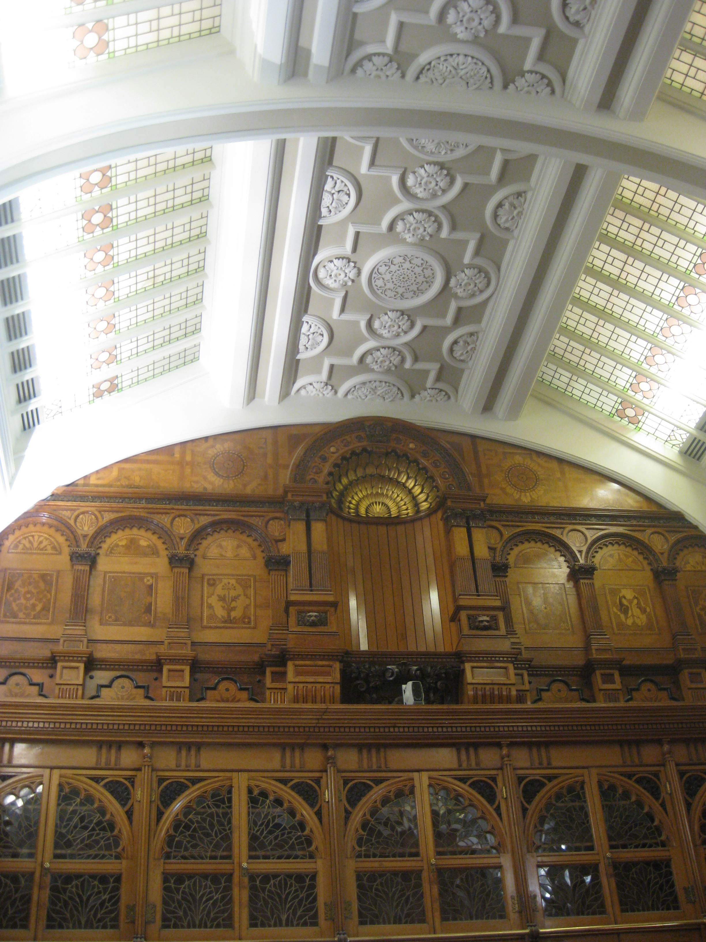 Inside it was also nice.  We worked our way up to the third floor, where there was a temporary Shakespeare exhibition on.  I loved the posters for Shakespeare performances from different countries around the world – there was some really fantastic artwork.  Up on the ninth floor there was also a special room dedicated to the big man.  The room was an original 17th century room, rebuilt various times in various buildings.  It held a collection of old Shakespeare books, and was generally a very beautiful place to be.