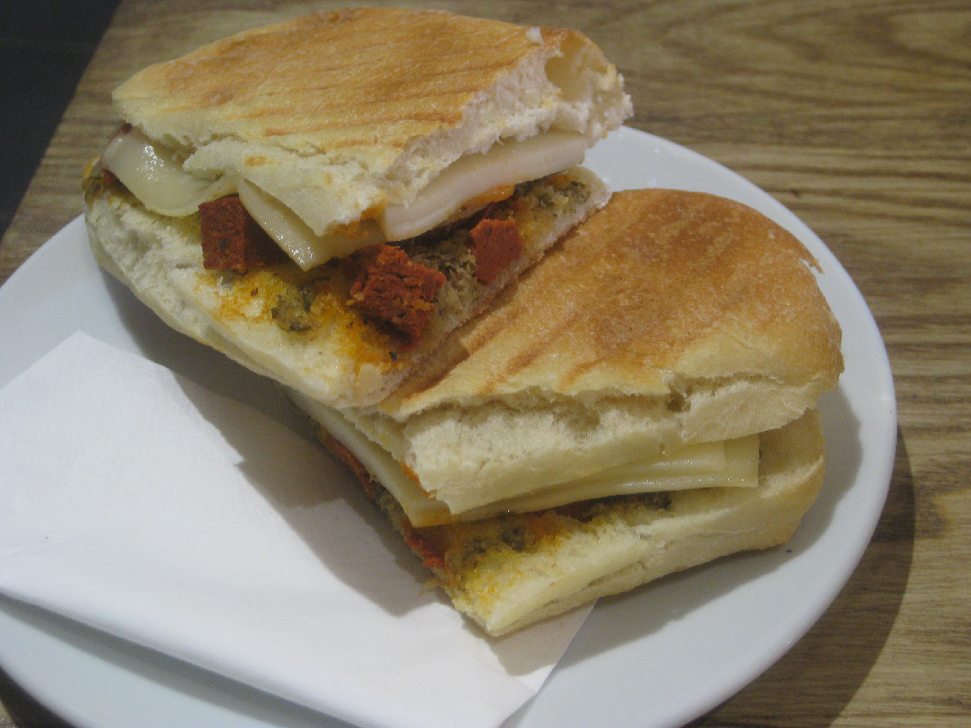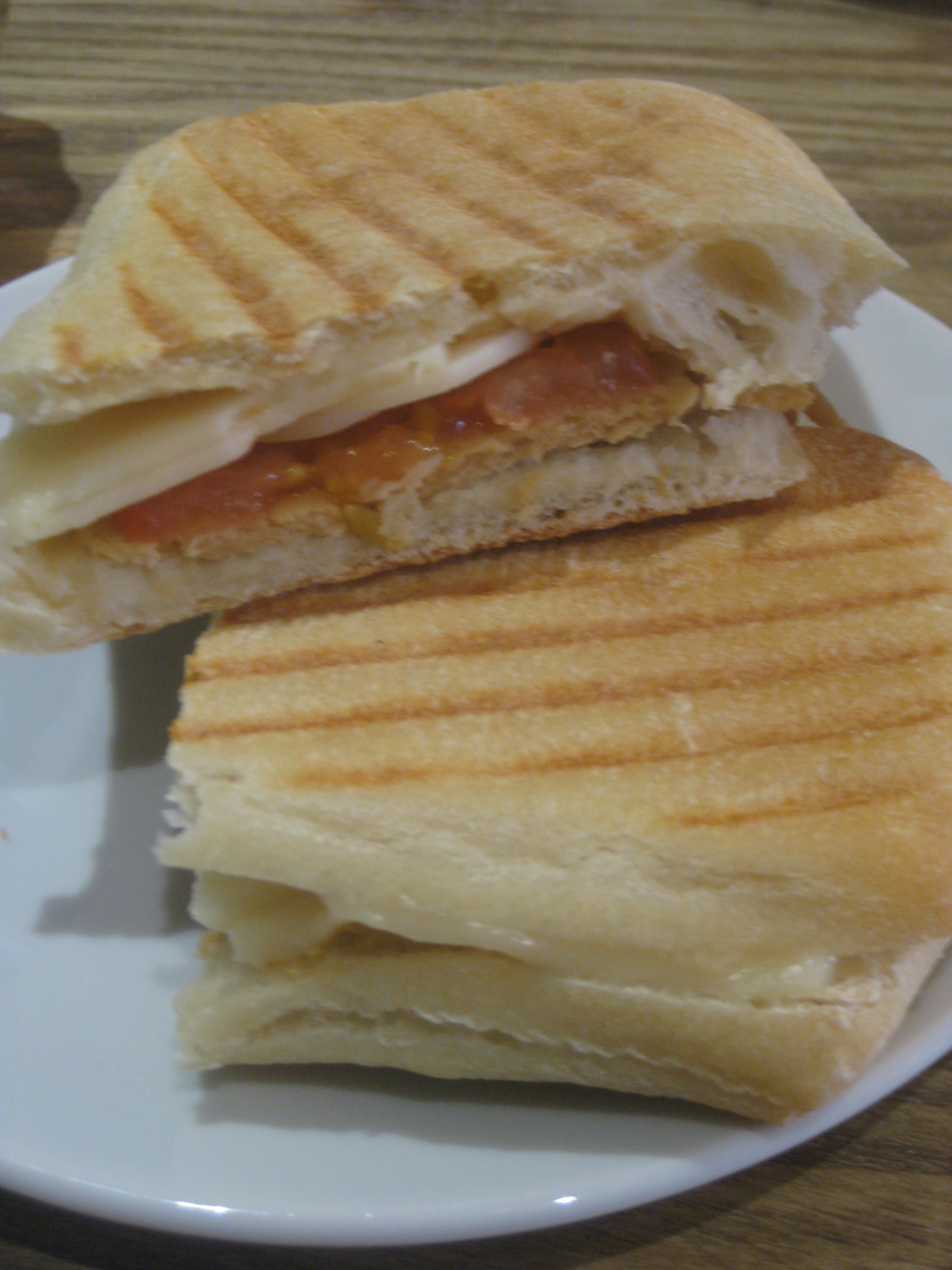 I had the chicken and mozzarella panino.  It was good, but not quite as good as I’d hoped – chicken chunks would have been amazing, but the slices were ok.  This chorizo and mozzarella one that Dr HH ordered was much better!  It had chunks of meat, and was really flavoursome.