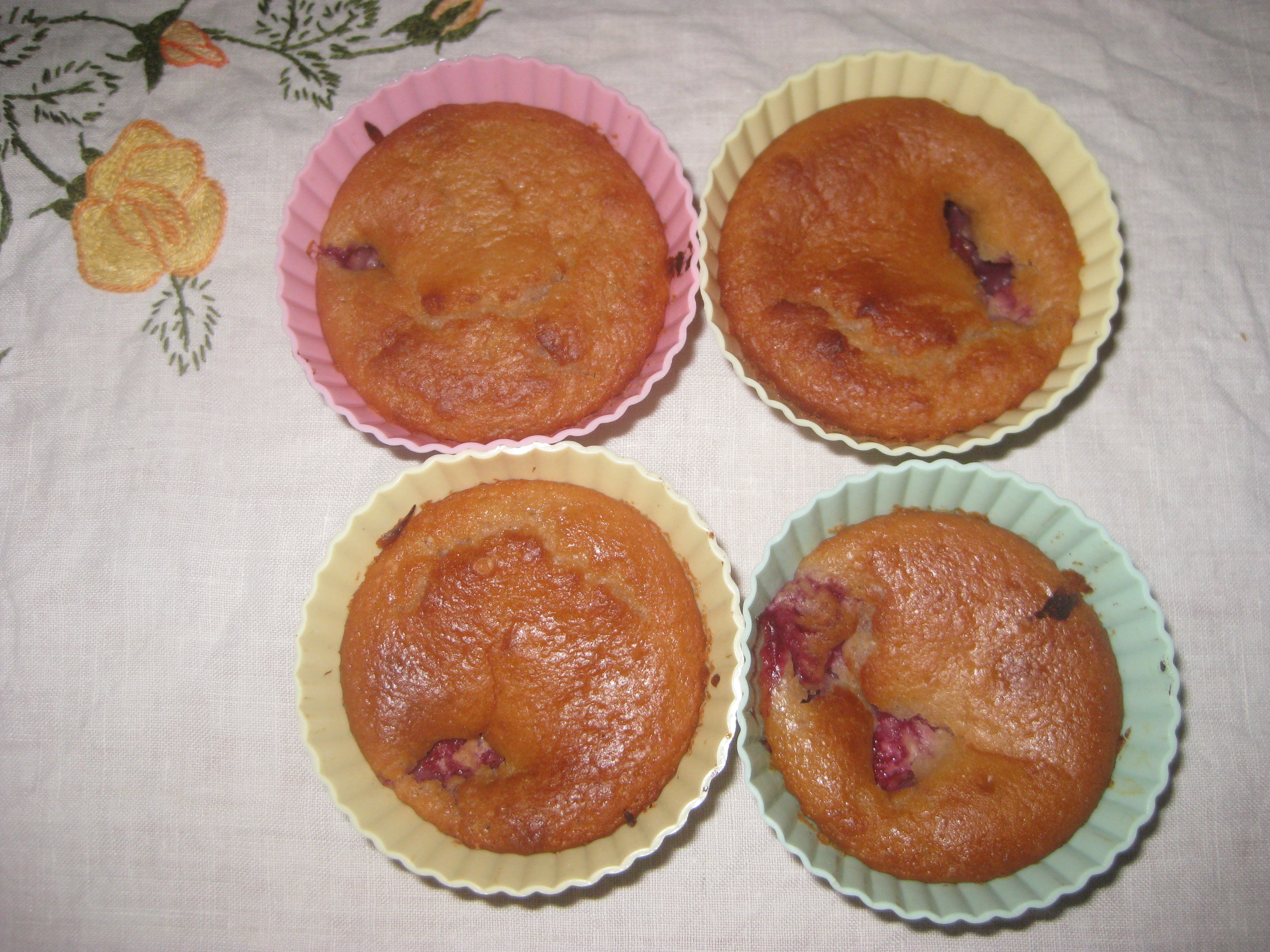 I was a little wary of these raspberry lemon muffins. The recipe calls for plain yoghurt, but says any fruity flavour can be used. The only vegan yoghurt I could find was cherry, and I was worried about how it would affect the taste. Taste-wise the muffins were fine, but all the raspberries sank to the bottom (except for a few I poked into the tops), making the sponge rather squishy. Still, they were good, fruity cakes.