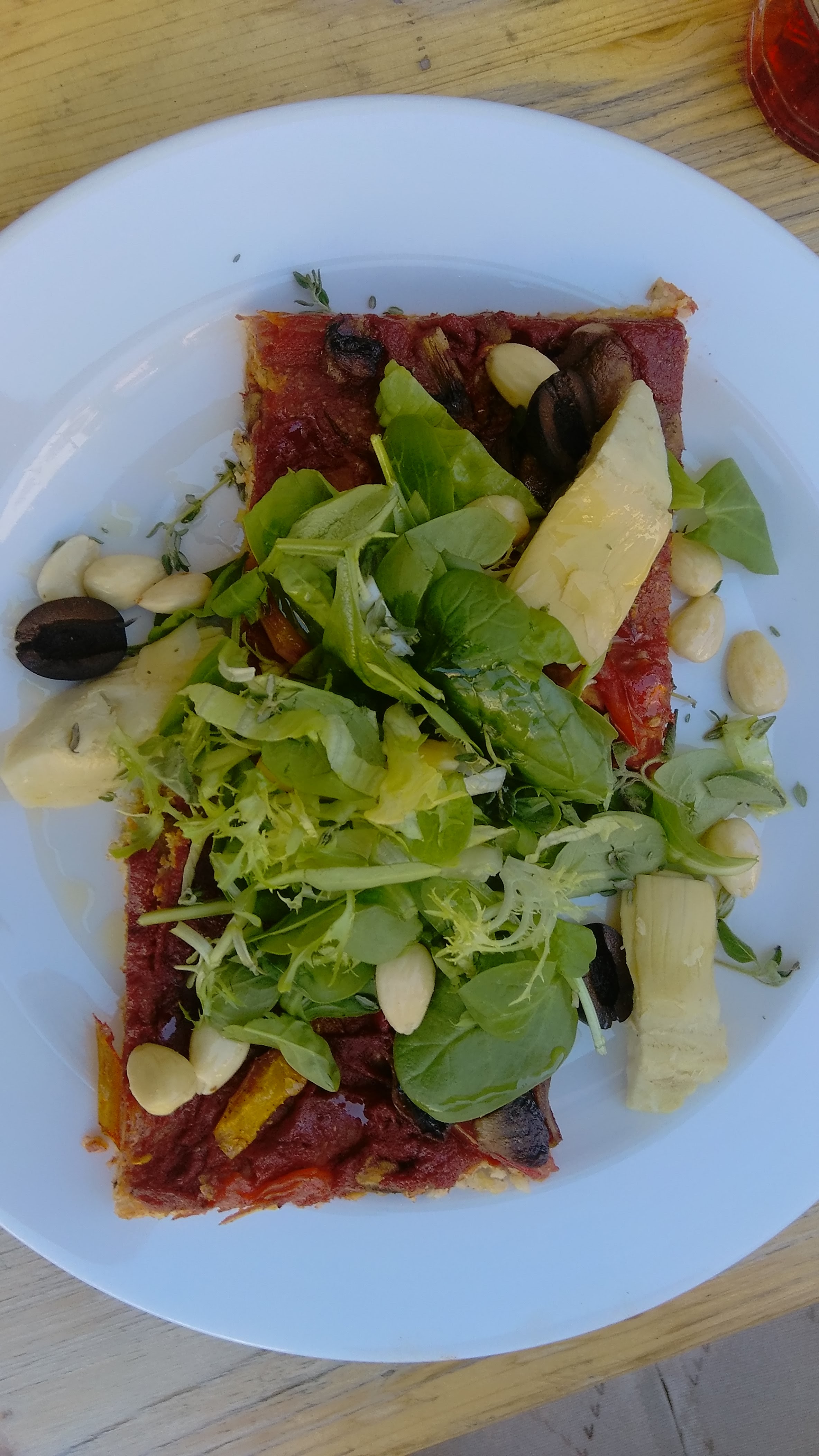 Also in Manchester, never overlook HOME, the independent cinema with its own restaurant.  There are two vegan pizza options on the menu, though I’ve only tried this one.  Pine nuts on a pizza are always classy.