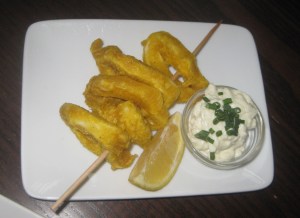 We marked our arrival in Munich with a trip to Bodhi, an all-vegan pub/restaurant specialising in Bavarian cuisine.  It’s not limited to Bavarian food though, with numerous burgers on the menu alongside some extremely tempting fried starters.  The starters menu actually reminded me of Madrid tapas bar B13, with its onion rings, crispy seitan bites, and these calimari. They had that perplexing rubbery texture (it’s delicious, but how do they do it?!), a taste of the sea, and light, crispy batter.  Highly recommended if, like me, you rarely get a chance to try this dish.